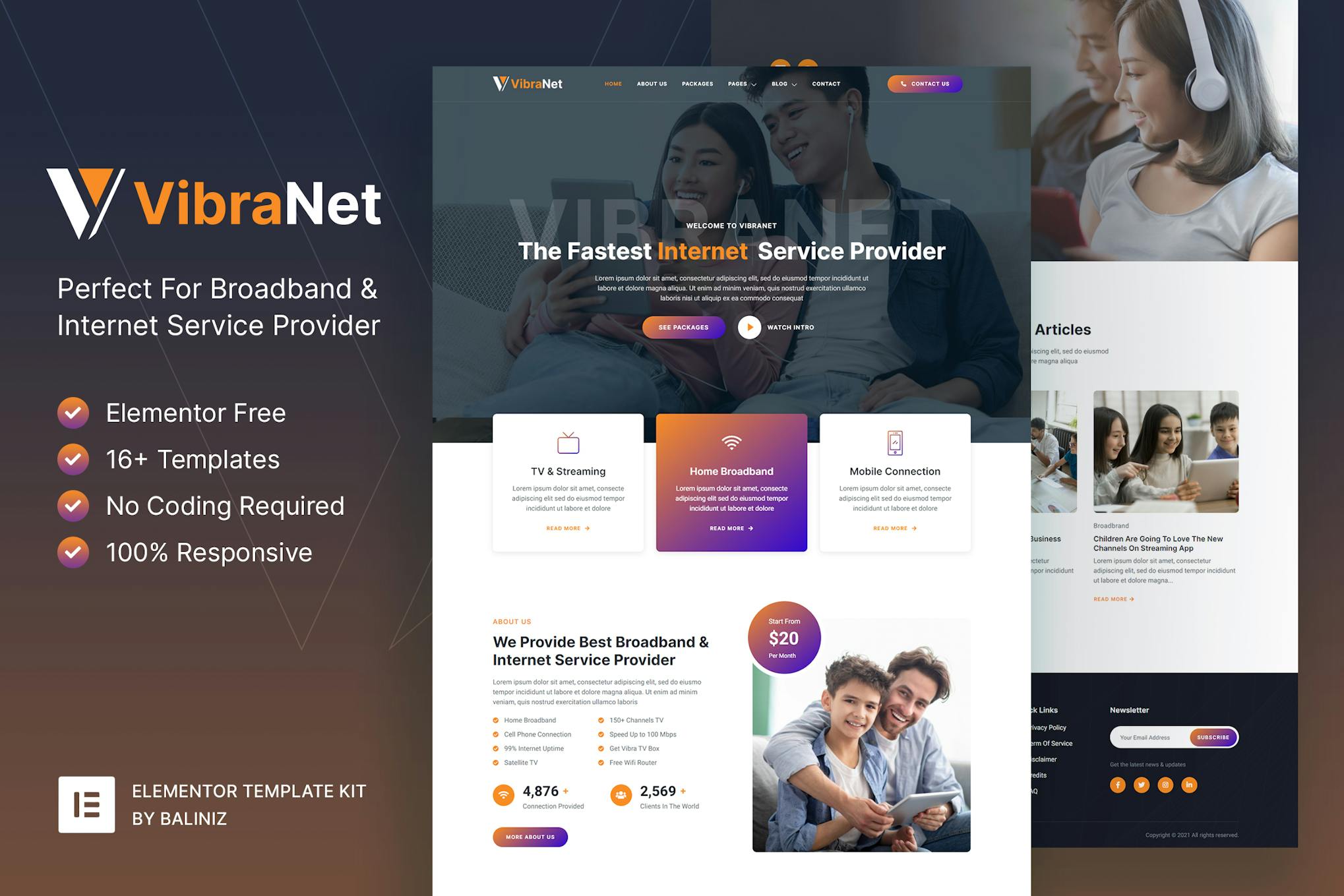 Introducing Vibranet, the ultimate Elementor Template Kit designed for Internet Service Providers, Telecom companies, Technology startups, and IT-related businesses. Crafted with 16+ meticulously designed templates, Vibranet ensures a seamless website creation experience with its 100% responsive layout and retina-ready visuals. Whether you need a Home, About Us, Services, or Blog page, this kit has you covered. What’s more, you can achieve a modern and clean website without the need for coding, thanks to its use of Free Plugins like Elementor. Enhance your online presence today with Vibranet and stand out in the digital realm!