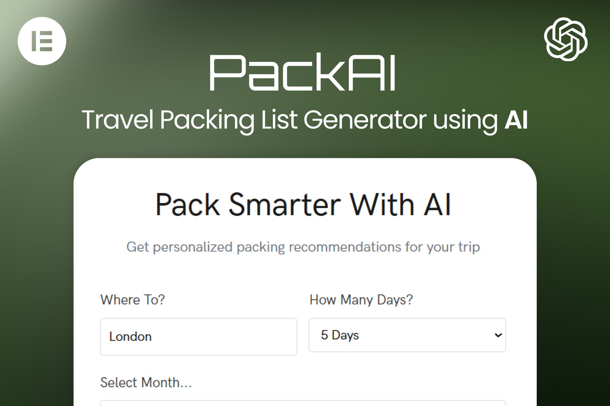 Elevate your WordPress platform with AI-powered travel packing recommendations. Users can effortlessly generate personalized lists tailored to their trip specifics, from beach getaways to backpacking expeditions. This smart tool analyses trip context factors like weather and duration and provides seamless integration and user-friendly experience, ensuring your website caters to diverse travel needs effectively and efficiently. Stay organized, save time, and access expert recommendations with this innovative plugin.