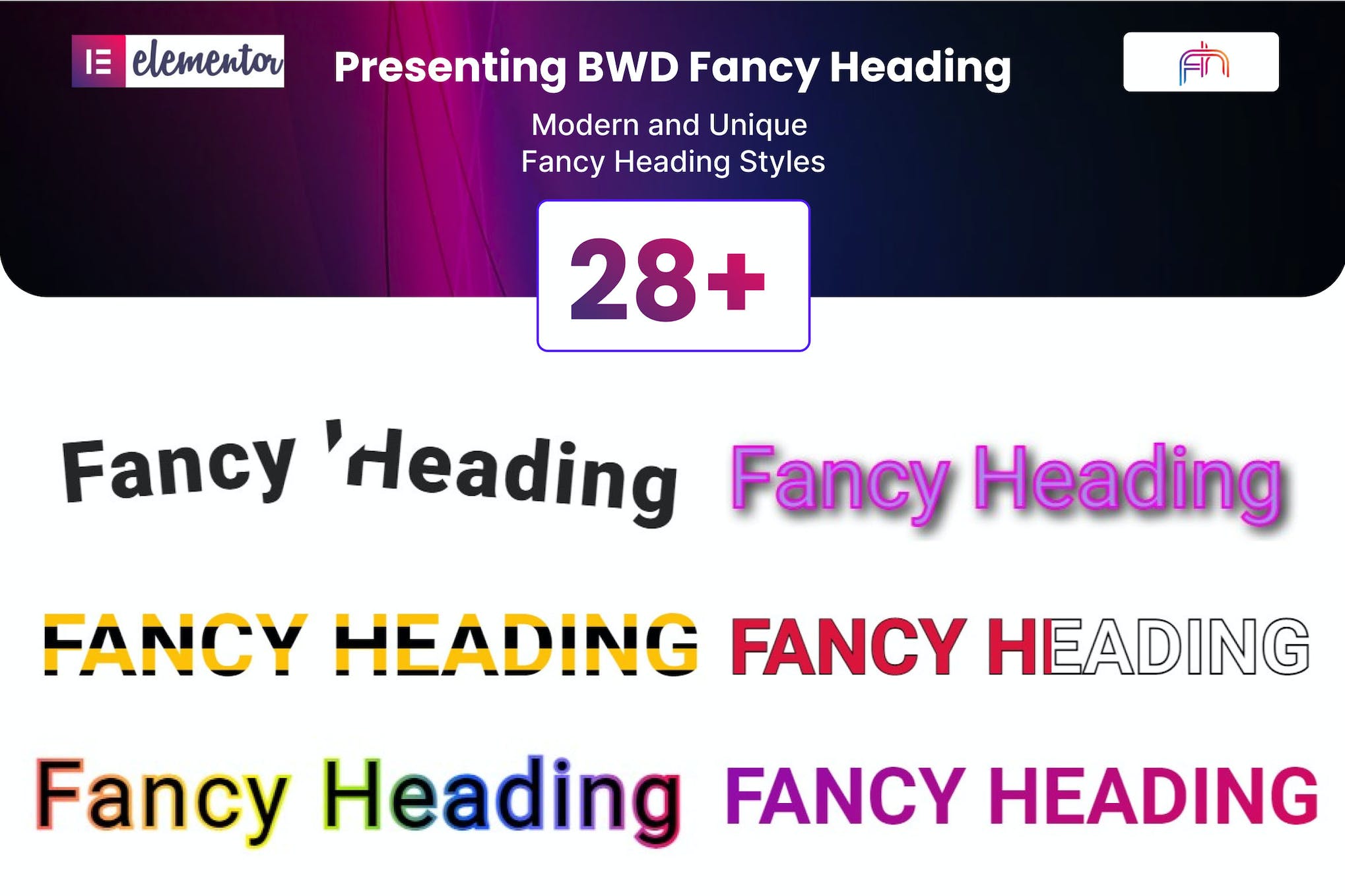 Introducing BWD Fancy Heading, a lightweight Elementor base WordPress plugin that allows you to enhance your website with attractive and eye-catching headings, all without the need for any coding knowledge. With a selection of 28+ unique preset designs to choose from, finding the perfect heading for your website has never been easier. Whether you’re a beginner or an experienced user, creating and customizing your own Fancy Heading is a breeze. This plugin is responsive, SEO-friendly, and compatible with the latest WordPress version, making it the perfect addition to any Elementor 2.5 and higher based website.