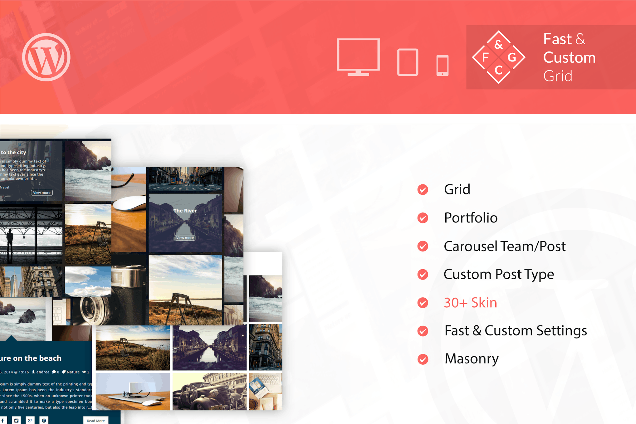 Fast & Custom Grid is a versatile WordPress plugin that simplifies the grid-building process with its user-friendly interface. You can choose from various grid options such as Grid, Portfolio, Portfolio with Preview, and Carousel. The plugin offers over 30 skins to personalize your grid design. With features like Team Carousel, Masonry, and Filter, you can showcase your content in a dynamic and engaging manner. It is fully responsive and supports custom post types, providing flexibility in layout options ranging from 1 to 5 columns. Additionally, it includes video tutorials for easy setup and customization.
