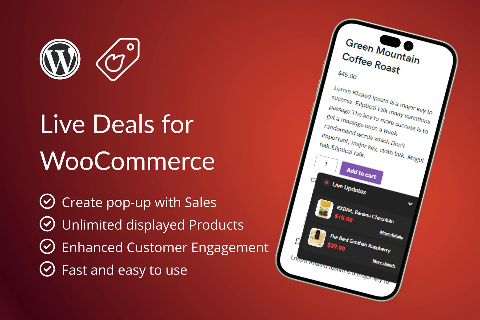 Elevate your website with Live Deals Display plugin, showcasing real-time deals and promotions to drive conversions. Engage visitors by highlighting the latest offers and discounts in a visually appealing manner. Key features include creating live deals pop-ups, adding unlimited products, easy installation, compatibility with any theme, and full translatable support. The plugin is user-friendly with a dedicated help team and detailed documentation. Purchase and install the plugin, then start creating compelling live deals campaigns to enhance your online presence and boost sales.