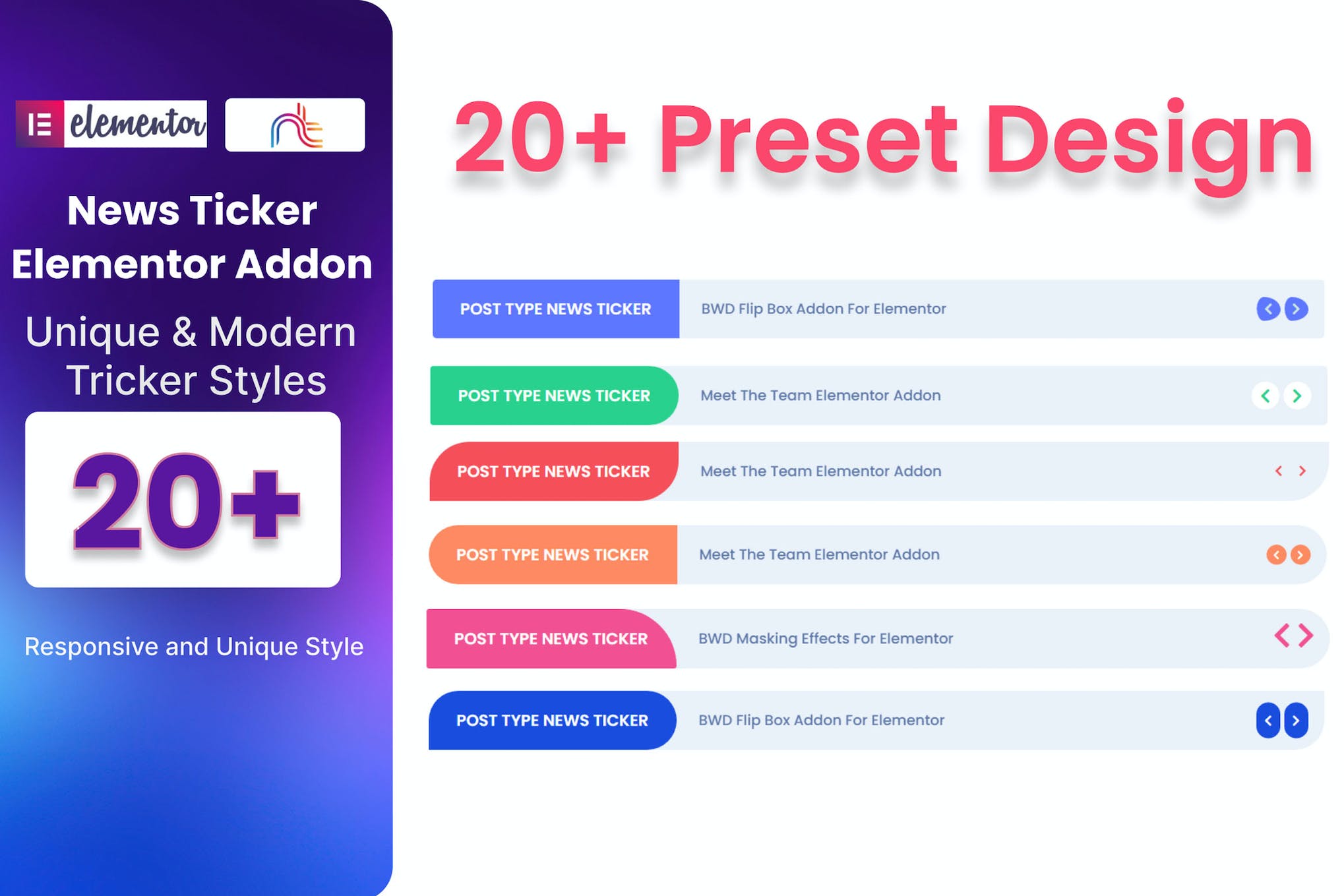 Introducing News Ticker, a professional-grade WordPress plugin designed for Elementor users. With its lightweight and user-friendly interface, you can effortlessly enhance your website with an attractive news ticker, no coding skills required. Choose from 21 pre-designed presets that exude modern appeal, while advanced customization options allow you to create a truly unique ticker. Fully responsive and SEO-friendly, News Ticker guarantees a seamless experience across browsers and devices. Experience the convenience of quick translation with the included pot file, and rest easy knowing that this plugin is compatible with the latest version of WordPress.