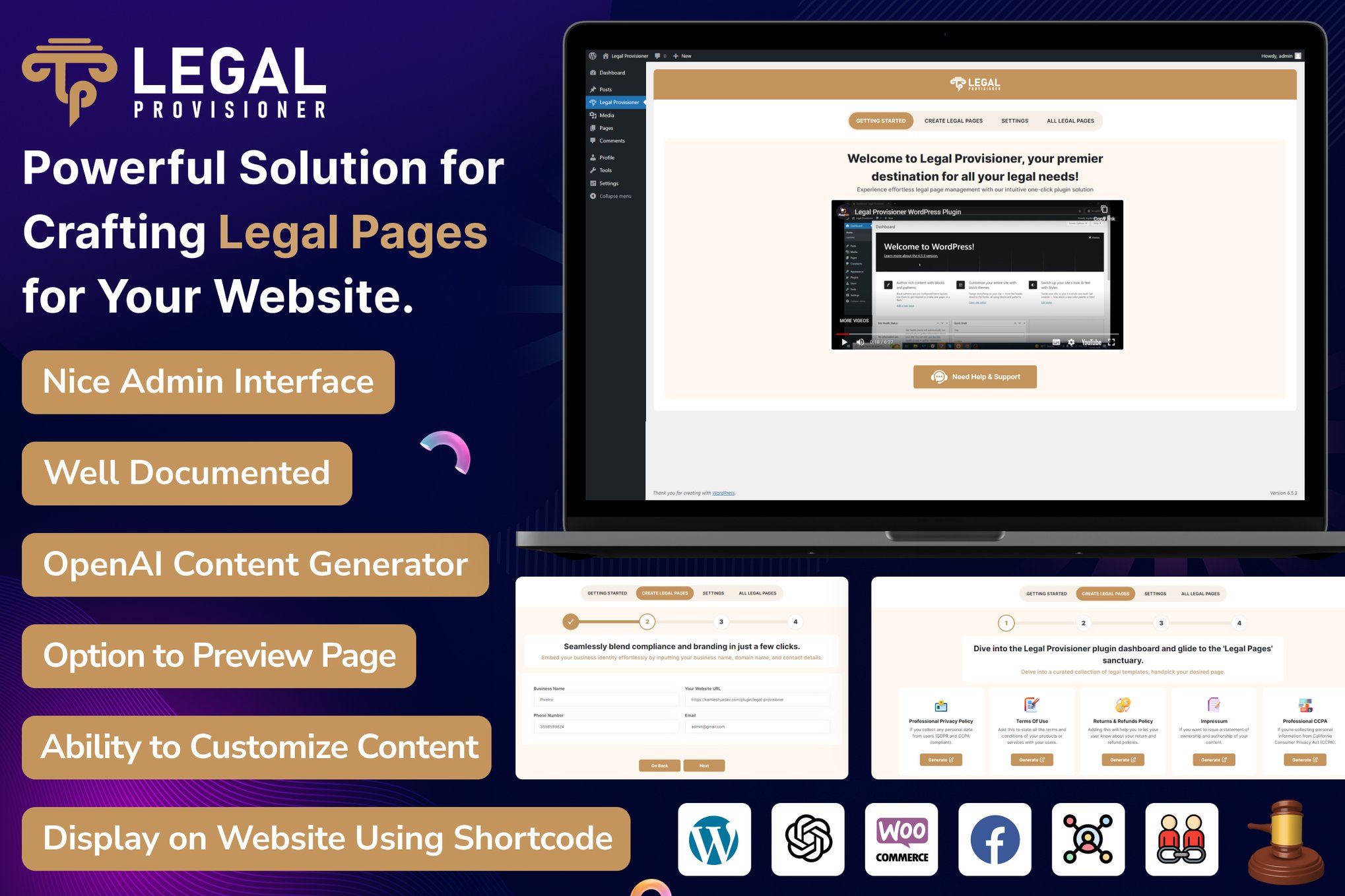 Crafting professional legal pages for your WordPress website is now simpler with the Legal Provisioner – a powerful plugin with 32 DFY templates like Terms and Conditions, Refund Policy, and more. The integration with Open AI API enables content spinning for personalized results. Customize settings and easily generate legal documents, preview before publishing, and add a footer with a link for quick access, all with the convenience of shortcodes. Elevate your brand’s compliance with this feature-rich plugin and benefit from dedicated support and excellent documentation.
