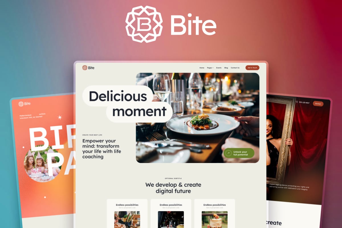 Discover Bite, a chic and captivating Event Planner & Catering WordPress theme perfect for creating professional event management or catering company websites. Crafted for wedding planners, corporate events agencies, and more, Bite offers a festive design with elegant touches. With Elementor page builder integration, you can effortlessly showcase skills, testimonials, and portfolio. Seamlessly compatible with MetForm and Events Calendar, Bite ensures your clients stay informed about upcoming events. Elevate your business with Bite’s sophisticated features and modern functionality.