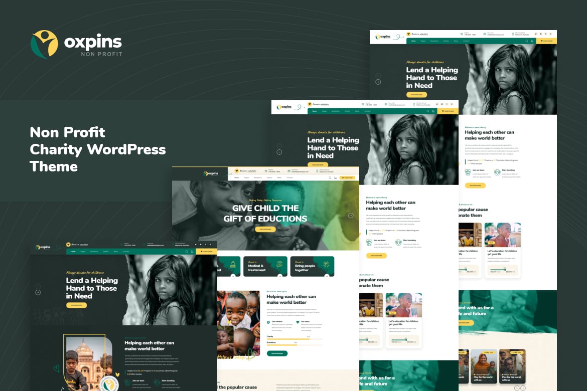 Presenting Oxpins, a sophisticated and intuitive Non Profit Charity WordPress Theme. Tailored for charities, NGOs, fundraisers, and more, it boasts 6 Home versions and 20+ Inner pages. Seamlessly navigate customization with the Live Customizer Options and enjoy features such as WooCommerce Compatibility, RTL support, and Child Theme integration. Responsive design, SEO-optimized code, and unlimited color options make Oxpins a versatile solution for creating impactful charity websites with ease.