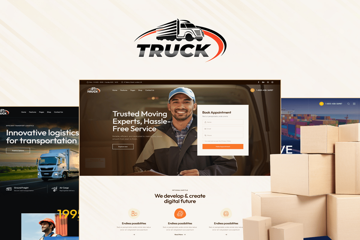 Presenting Truck, a sophisticated Cargo Transportation and Logistics WordPress Theme tailored for modern trucking agencies, transportation bureaus, and logistics firms. Ideal for warehousing, corporate shipping, and freight services, this theme offers a range of trendy features ensuring smooth business operation. With compatibility for Contact Form 7, Mailchimp, and Slider Revolution, Truck’s unique layout, powered by Elementor, transforms transportation websites into standout platforms. Its mobile-responsive design and versatile options make establishing a robust online presence for logistic businesses effortless.