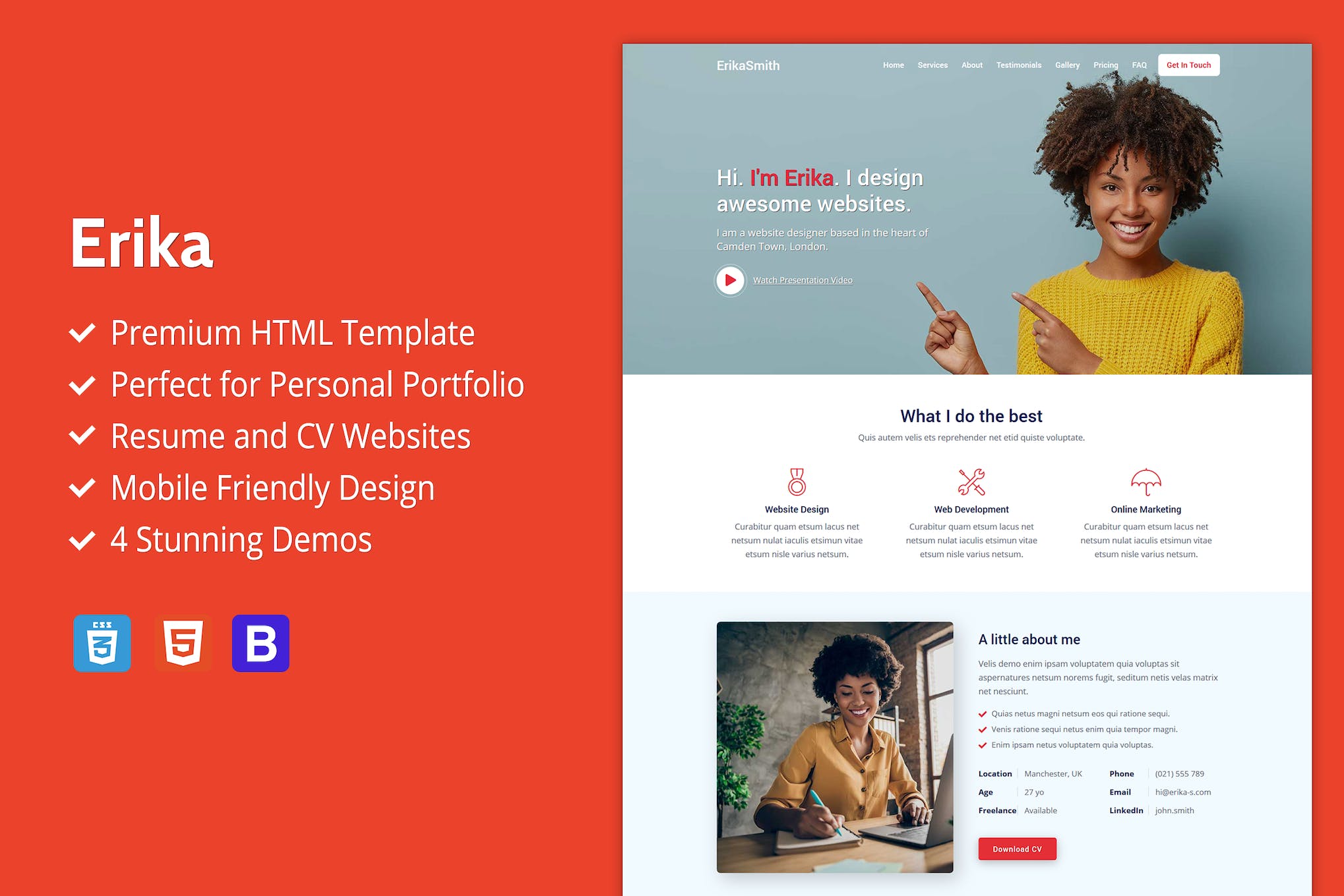 Erika – Portfolio, CV And Resume HTML Template is a sleek and professional template that is perfect for showcasing your skills and experience. With its modern design and easy-to-customize layout, it provides a great platform to present your portfolio, CV, and resume. Stand out from the crowd with Erika and impress potential employers or clients.