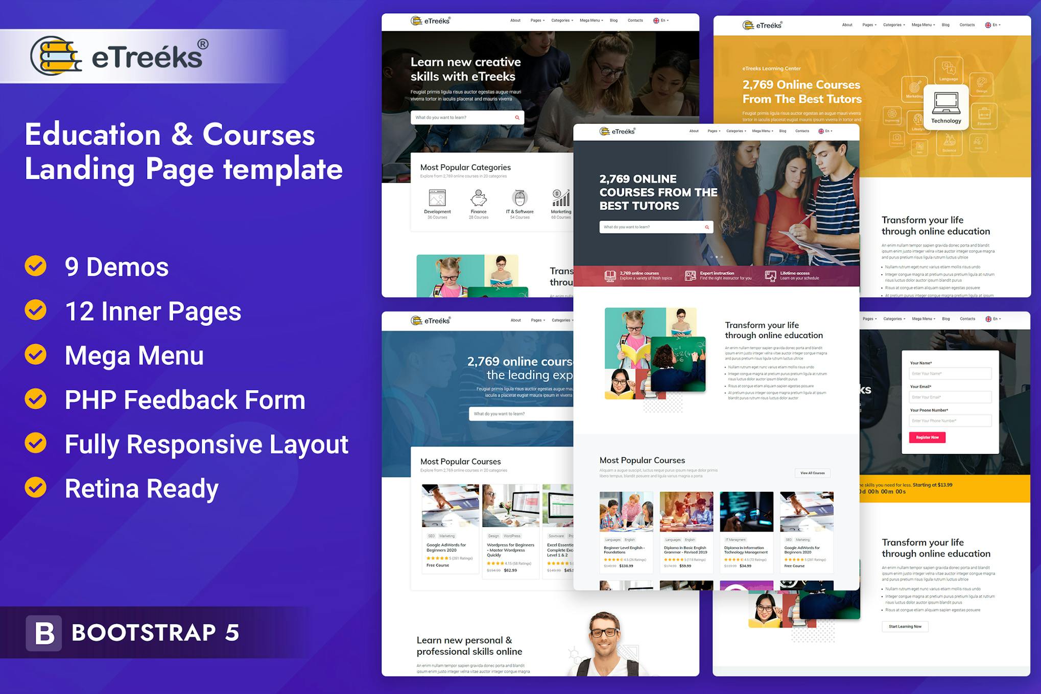 Enhance your educational institution with eTreeks, a versatile solution tailored for coaching classes, online courses, institutes, and schools. Featuring 9 distinct layout styles and 14 additional inner pages, this responsive platform is designed for optimal viewing on various devices. Built on Twitter Bootstrap 5.x & 4.3.x, eTreeks boasts a clean, modern design, SEO optimization, and integration capabilities such as Google Analytics. Elevate your online presence with eTreeks.