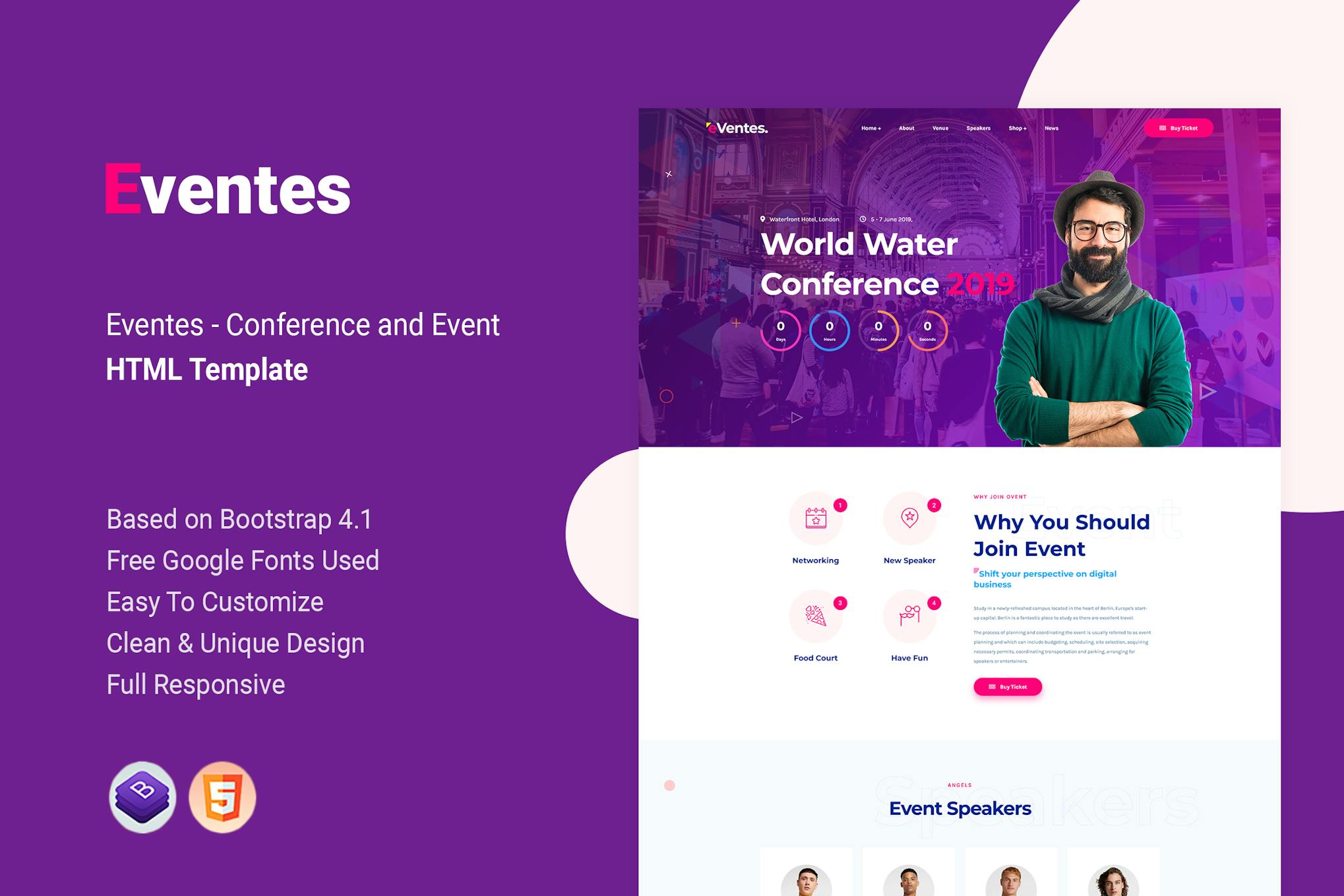 Introducing Eventes – a sleek and innovative HTML template perfect for Conference, Event, Meetup, Seminar, and more. Designed with a fully responsive layout and built on Bootstrap 4, this template offers a modern design with wow animations and clean coding. With 101 home page options, 360+ icons, and easy customization features, Eventes is tailored to meet the needs of Consulting, Finance, and Insurance businesses. Elevate your online presence with Eventes today.