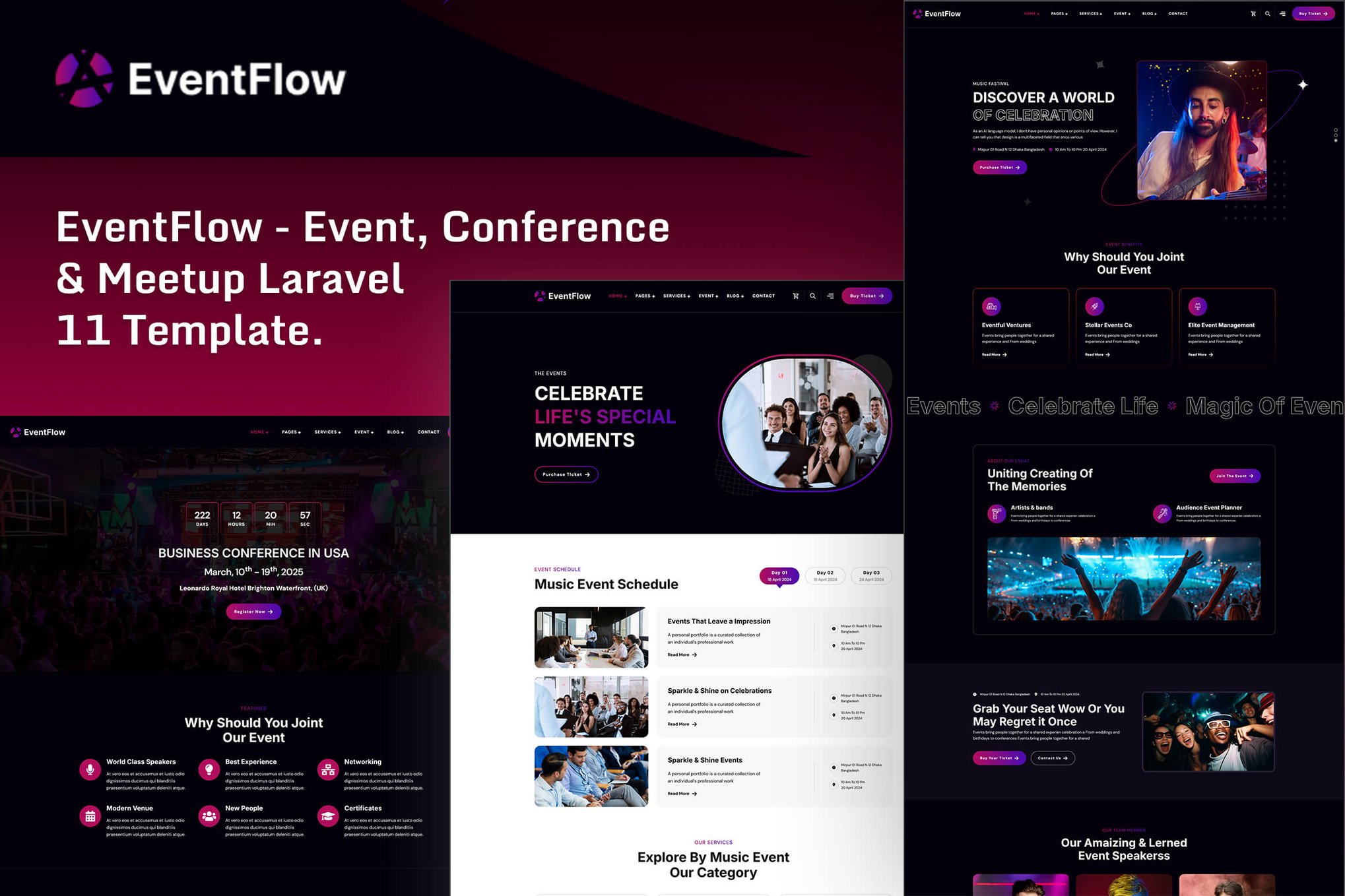 Introducing EventFlow, an innovative Laravel 11 Template designed for events, conferences, meetups, and more. This template boasts a modern and clean responsive design, making it ideal for a wide range of event-related websites. With organized files and customizable code, EventFlow offers a seamless user experience on various devices. Key features include multiple home versions, inner pages, Owl Carousel Slider, CSS3 animations, Bootstrap 5 framework, SEO-optimized code, and cross-browser compatibility. Plus, you’ll receive extensive documentation and free support for a hassle-free experience. Get started with EventFlow to create a stunning and functional event website today.