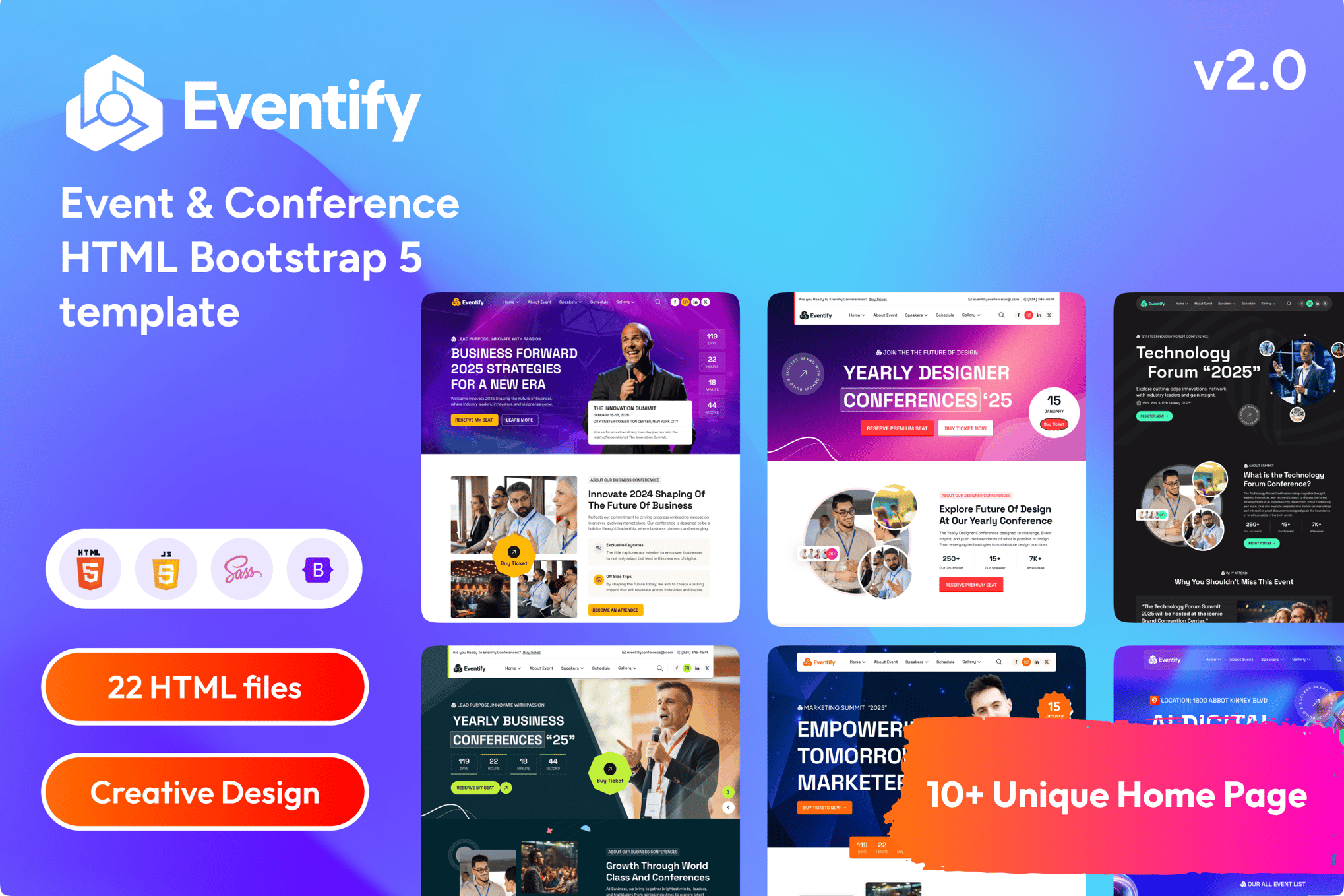 Eventify – Event & Conference HTML Bootstrap 5 Template offers a comprehensive solution for creating stunning websites tailored to events, conferences, and seminars. With a modern and responsive design, this template features essential pages for managing event details, speaker profiles, ticket bookings, and more. The package includes ten creative homepage options, various inner pages, Figma design files, detailed documentation, and lifetime updates with user support. Eventify ensures a seamless user experience on all devices, with pixel-perfect design and customizable color and fonts. Elevate your event’s online presence effortlessly with Eventify.