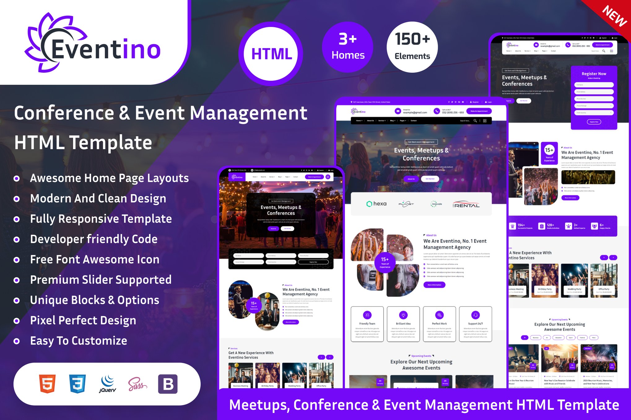 Eventino is a dynamic HTML template ideal for creating stunning websites dedicated to conferences, events, meetups, and more. Boasting a purpose-oriented design and a modern layout, Eventino features a plethora of appealing pages like event lists, FAQs, pricing, blogs, and contacts. This fully responsive template is compatible with various devices and browsers, ensuring seamless performance. Eventino also offers customization options, fast loading times, and developer-friendly coding, making it a top choice for anyone looking to build a professional and interactive conference or event website. With its user-friendly features, extensive documentation, and dedicated support, Eventino is a reliable asset for your online presence.