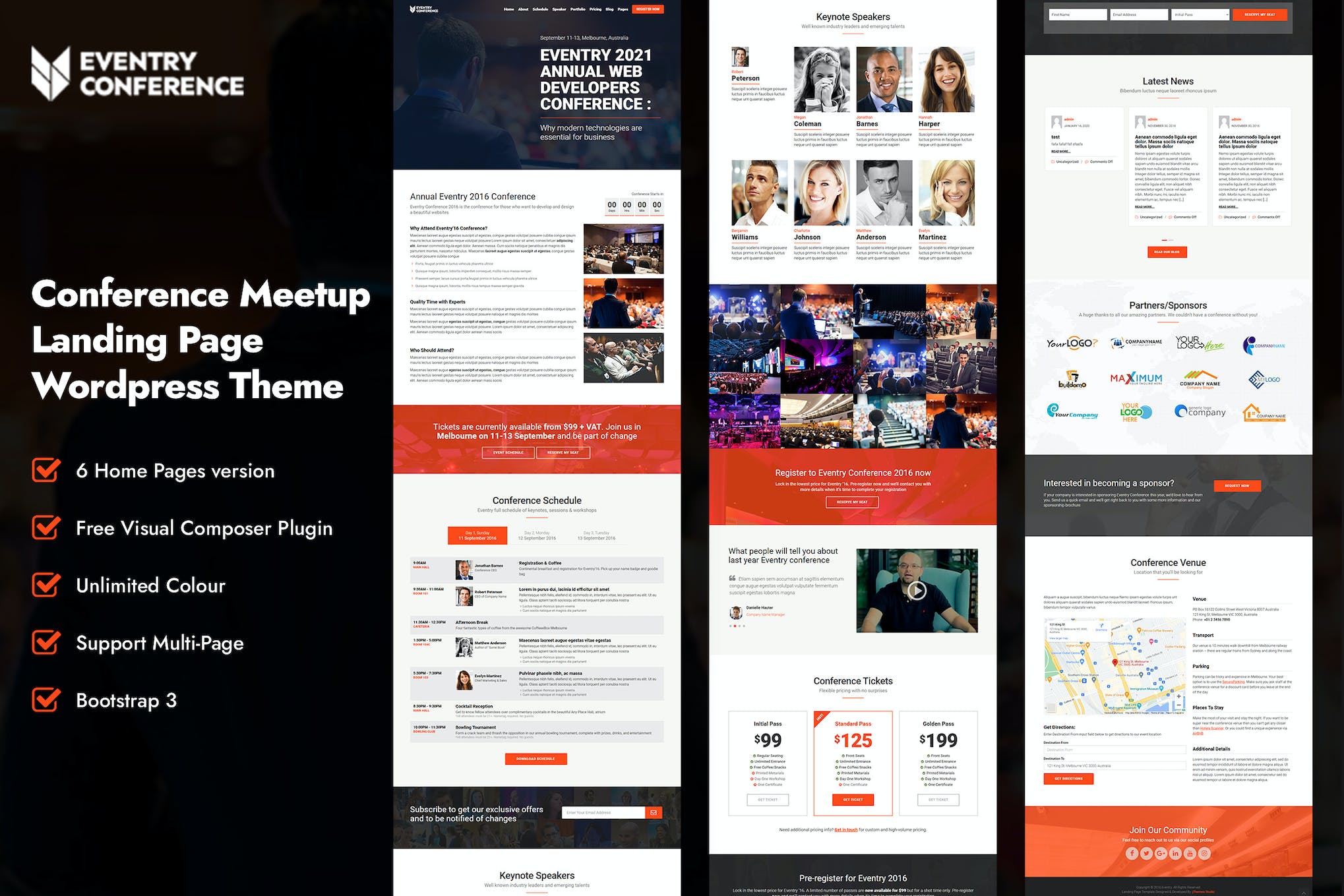 Introducing Eventry, a fully functional WordPress theme specifically designed for conferences, meetings, and exhibitions. With its seamless integration with third-party technologies like WooCommerce, MailChimp, and Visual Composer, Eventry offers a comprehensive solution for event management. Customize your event landing page with ease using its wide range of customizable features. With four predefined homepages, ten color schemes, and cross-browser compatibility, Eventry ensures a stunning and unique event website. It is responsive, .POT ready, and comes with step by step documentation and demo content for easy setup.