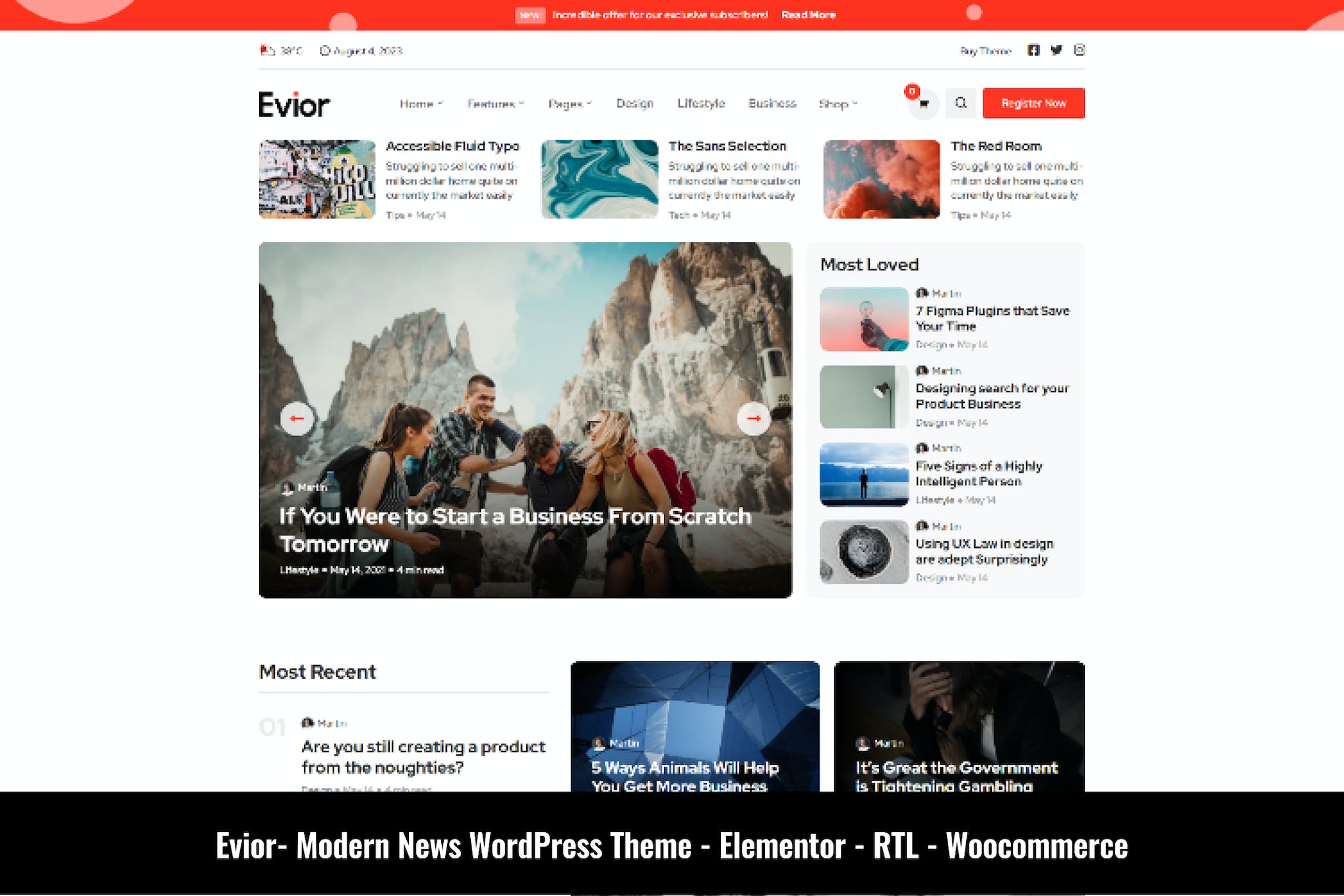Introducing Evior, a trendy and attractive Magazine WordPress Theme perfect for any type of News/Magazine website. Whether you’re in the world of fashion, sports, politics, or travel, this theme has everything you need to create a clean, modern, and user-friendly online news magazine. With unlimited fonts and colors at your fingertips, customization has never been easier. Designed with a focus on readability and a quality user experience, Evior is the ultimate WordPress theme to jumpstart your online news portal. Experience easy installation and configuration, advanced query builders for posts, and a range of homepage variations to choose from. Discover the power and flexibility of Evior today!