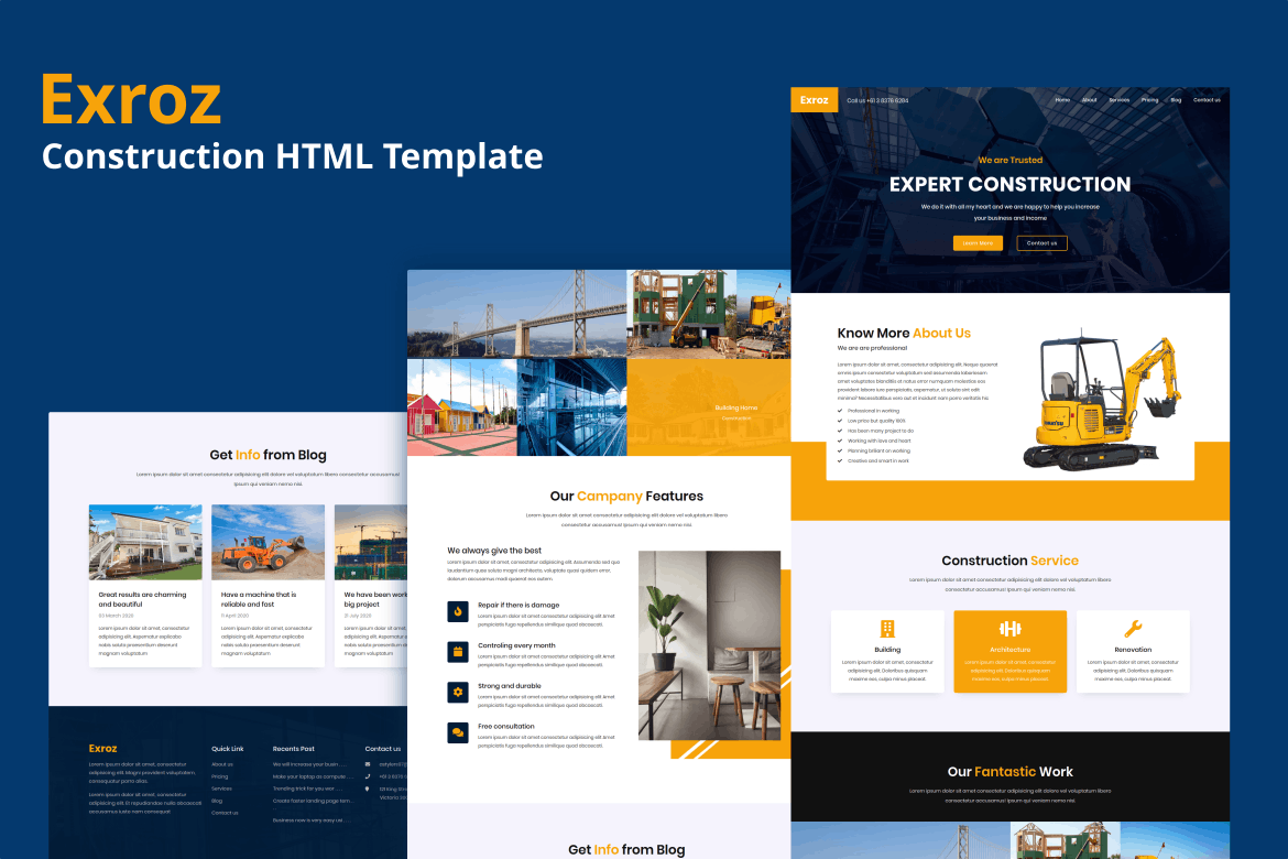 Exroz is a sleek and professional construction template that is perfect for showcasing your construction company’s portfolio. With its modern design and smooth animations, this template will impress clients and help you stand out from the competition. Whether you specialize in commercial or residential projects, Exroz has all the features you need to create a stunning website.