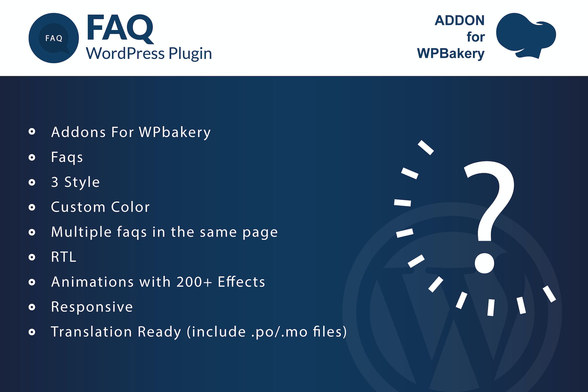 Introducing Faq for WPBakery Page Builder, the ultimate solution for effortlessly adding FAQs to your WordPress website. With just one click, you can conveniently incorporate your FAQs into your page. This innovative plugin offers a range of features, including customizable colors, the ability to include multiple FAQs on the same page, three unique styles, RTL support, and over 200 stunning animation effects. Furthermore, this responsive plugin is translation ready, making it accessible to a global audience. Please note that WPBakery Page Builder for WordPress must be installed for optimal functionality. Boost user engagement and streamline customer inquiries with Faq for WPBakery Page Builder today.