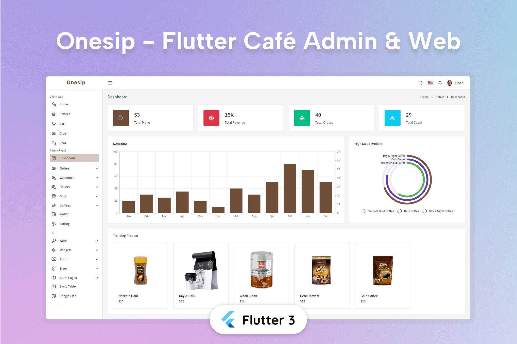 Download Onesip – Flutter Cafe Admin & Client Web, a versatile admin template tailor-made for cafe and coffee shop management. This beautifully crafted template boasts a range of customizable screens and components to streamline order handling, customer management, analytics tracking, and more. Ideal for developers seeking a sleek design foundation for a responsive admin interface lacking backend functionality, Onesip offers a diverse range of scenarios from ecommerce to education. Key features include Flutter 3.24 compatibility, responsive design for all devices, light/dark mode, and an array of UI elements like buttons, modals, loaders, and more. Elevate your cafe management experience with Onesip today!