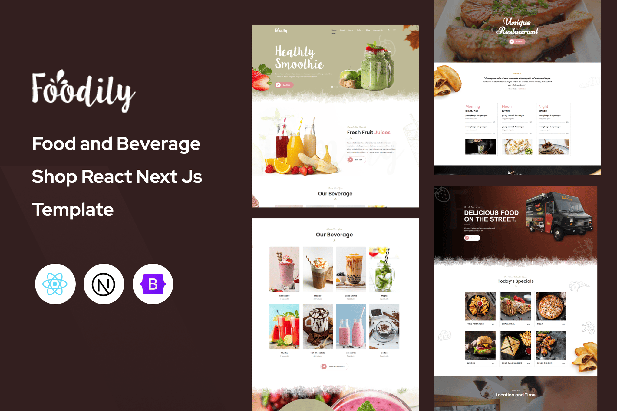 ️ Foodily is a visually appealing and user-friendly website template perfect for small food & beverage shops, restaurants, food bloggers, and food trucks. The template’s responsive design ensures seamless viewing on all devices. It features React js, Next js, Bootstrap 5.x framework, and a variety of layout options, including blog page templates. With detailed documentation and lifetime updates/support, Foodily is optimized for SEO and offers a sleek, modern design with touch-friendly navigation. Plus, it includes integrated Google Maps, a UI kit with various features, smooth transition effects, and compatibility with all modern browsers.