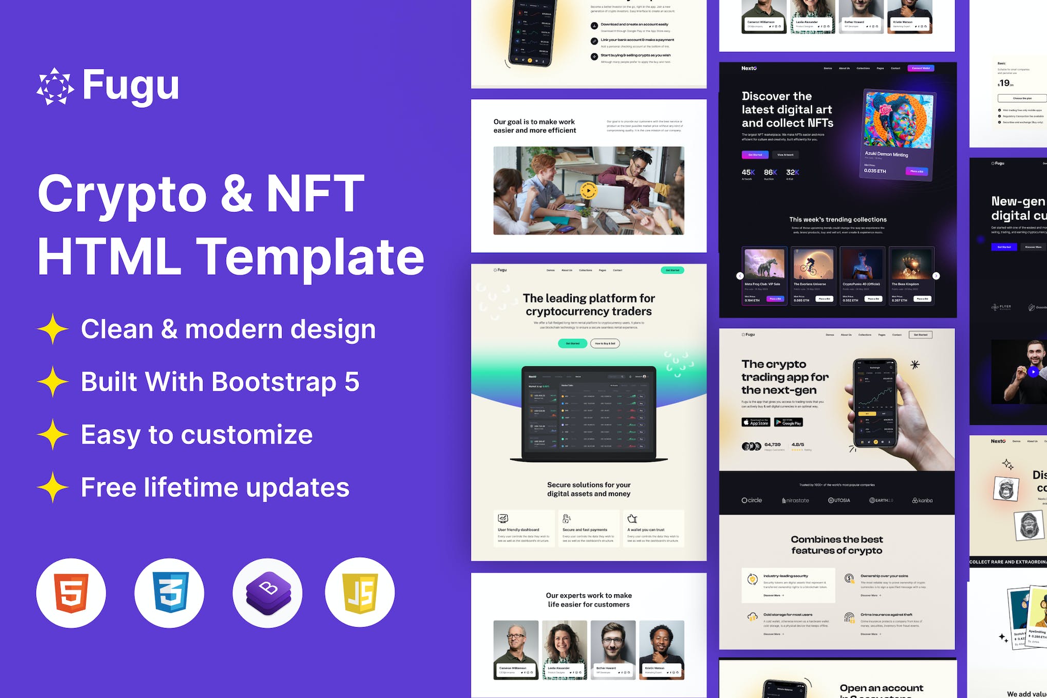Introducing Fugu NFT Template Website, a cutting-edge solution for showcasing collectibles, CryptoArt, and more. This fully responsive template boasts a sleek design and seamless customization options. With Bootstrap 5 framework, Ajax PHP contact form, and W3 valid HTML files, Fugu offers a user-friendly experience on any device. Explore its modern home pages, clean code structure, and exhaustive documentation to elevate your online presence effortlessly. Upgrade to Fugu for a professional and engaging platform that stands out.