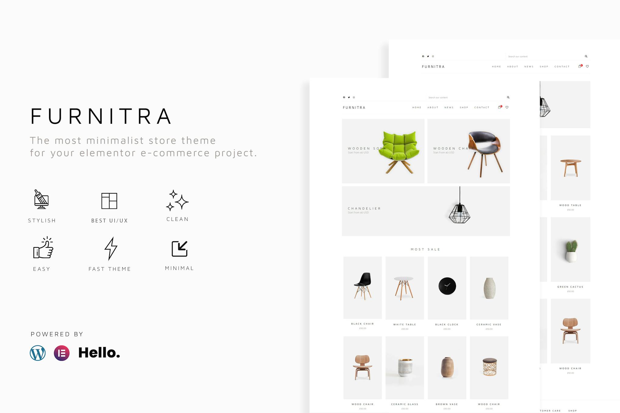 Furnitra is a meticulously crafted e-commerce Elementor template tailored for website projects, seamlessly integrating with Woocommerce and Elementor Pro. Designed with a keen eye for minimalistic elegance, it offers a clean and user-friendly interface, ensuring a smooth experience. Powered by the fast Hello by Elementor starter theme, Furnitra eliminates the common issues encountered with Woocommerce themes upon going live. Featuring essential pages like blog, contact, and search result options, this template also facilitates easy customization of product images for a minimalist touch. With its convenient installation process and powerful plugins, Furnitra serves as an ideal foundation for launching your business or serving clients. Elevate your web development journey with Furnitra – a template designed for success.