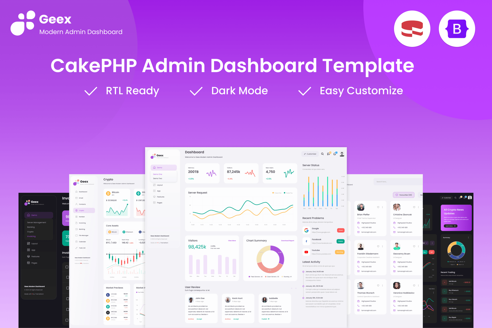 Experience the Geex CakePHP Responsive Admin & Dashboard Template, a robust collection of UI components that simplifies the customization process for developers. This versatile template offers forms, tables, charts, icons, and more, ensuring visually appealing interfaces that meet high-quality standards. Enjoy lifetime updates and access a world of possibilities with features like Bootstrap Framework integration, responsive design, W3 valid HTML files, and developer-friendly documentation. Unlock the full potential of CakePHP with structured codebase and essential functionalities for small to enterprise-level projects. Elevate your web applications with Geex today.