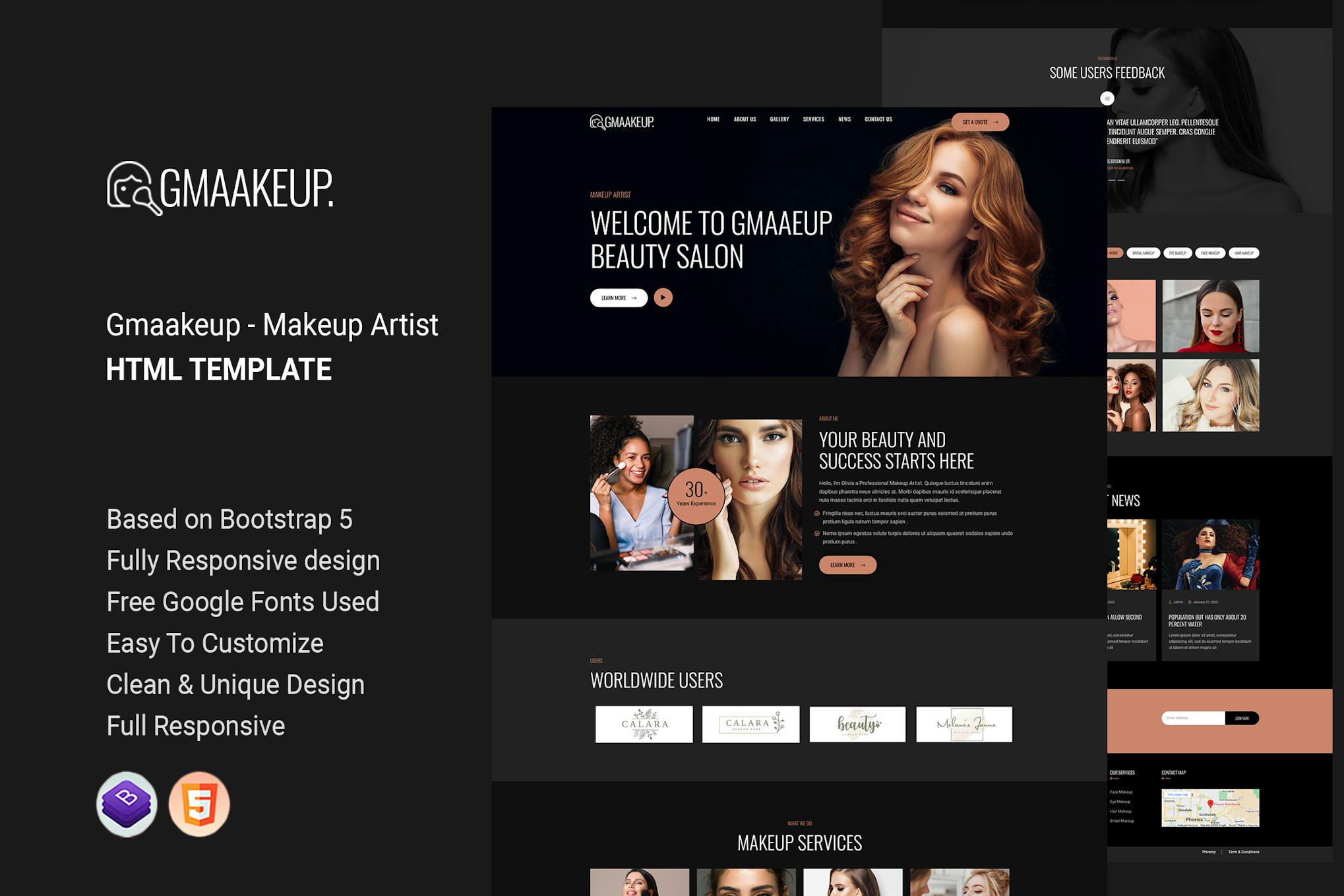 Elevate your makeup artist agency, beauty salon, or lash studio with Gmaakeup – Makeup Artist HTML Template. This modern and professionally designed template is tailored to showcase your expertise and services effectively. With features like a fully responsive design, Bootstrap framework, and 360+ icons, you can create a sleek and captivating online presence. Impress your clients with Wow Animations, clean design, and a sticky header while easily customizing the template to fit your brand aesthetic. Get ready to stand out in the beauty industry with Gmaakeup!