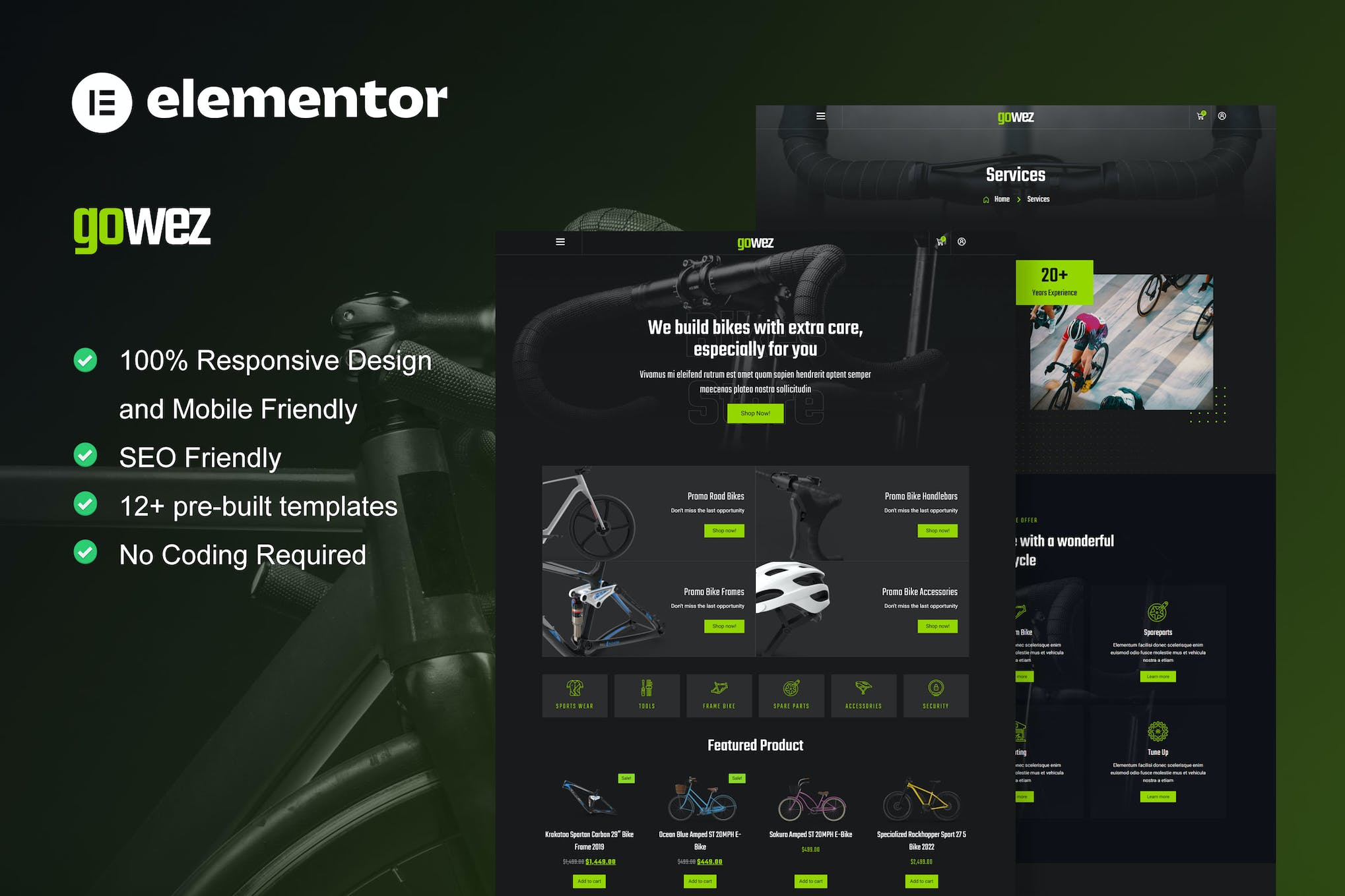 Introducing Gowez, a WooCommerce elementor template kit designed specifically for bike shops. With its 12 pre-built templates, featuring a modern and professional design, creating a stunning bike store website has never been easier. Whether you run a bike repair service, a custom bike painting business, or a bike spare part shop, Gowez is versatile and adaptable to suit your needs. Save time and effort with Elementor Page Builder, as you effortlessly customize and edit the layout without any coding required. Get your bike shop up and running today with Gowez.