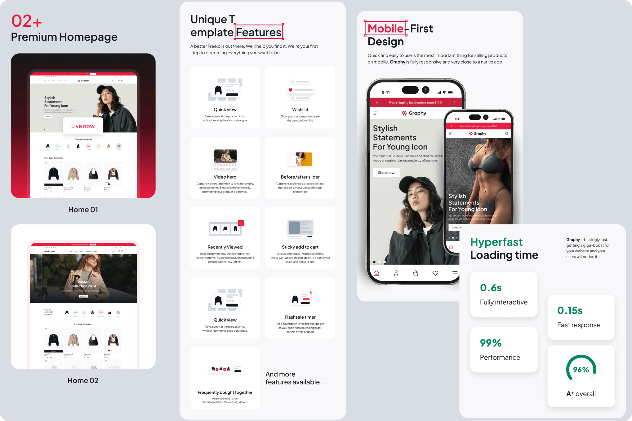 Download Graphy – the ultimate choice for fashion-forward online stores! Elevate your boutique’s digital presence effortlessly with Graphy’s sleek and powerful design, curated specifically for fashion retailers seeking a competitive edge. With limitless customization options, integrated Google fonts, and user-friendly mega menus, Graphy ensures a seamless shopping experience that drives sales growth. Achieve top-notch performance with impressive Google Insights scores, ensuring a visually striking and optimized site for your customers. Mobile responsive and cross-browser compatible, Graphy offers 6 months of dedicated support and lifetime updates to maximize your eCommerce success. Invest in Graphy today and transform your online fashion business with style and efficiency!