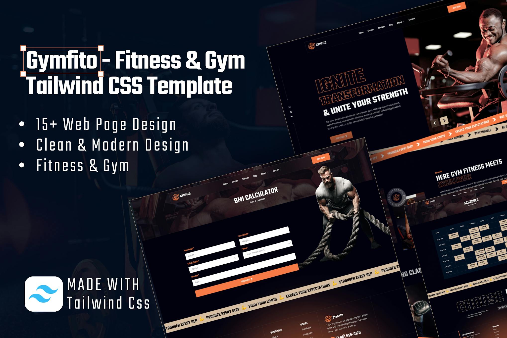 The Gymfito Tailwind CSS Fitness Gym HTML template is a modern and responsive web design solution tailored for fitness centers and gyms. This template offers a sleek layout with a focus on user experience, making it easy for visitors to navigate and find relevant information about the facility’s services and amenities. With its use of Tailwind CSS, the template ensures a high level of customization and flexibility for easy integration into any existing branding. The inclusion of various sections such as class schedules, trainer profiles, and membership plans helps gym owners effectively showcase their offerings. Overall, Gymfito is a professional and visually appealing choice for fitness businesses looking to enhance their online presence.