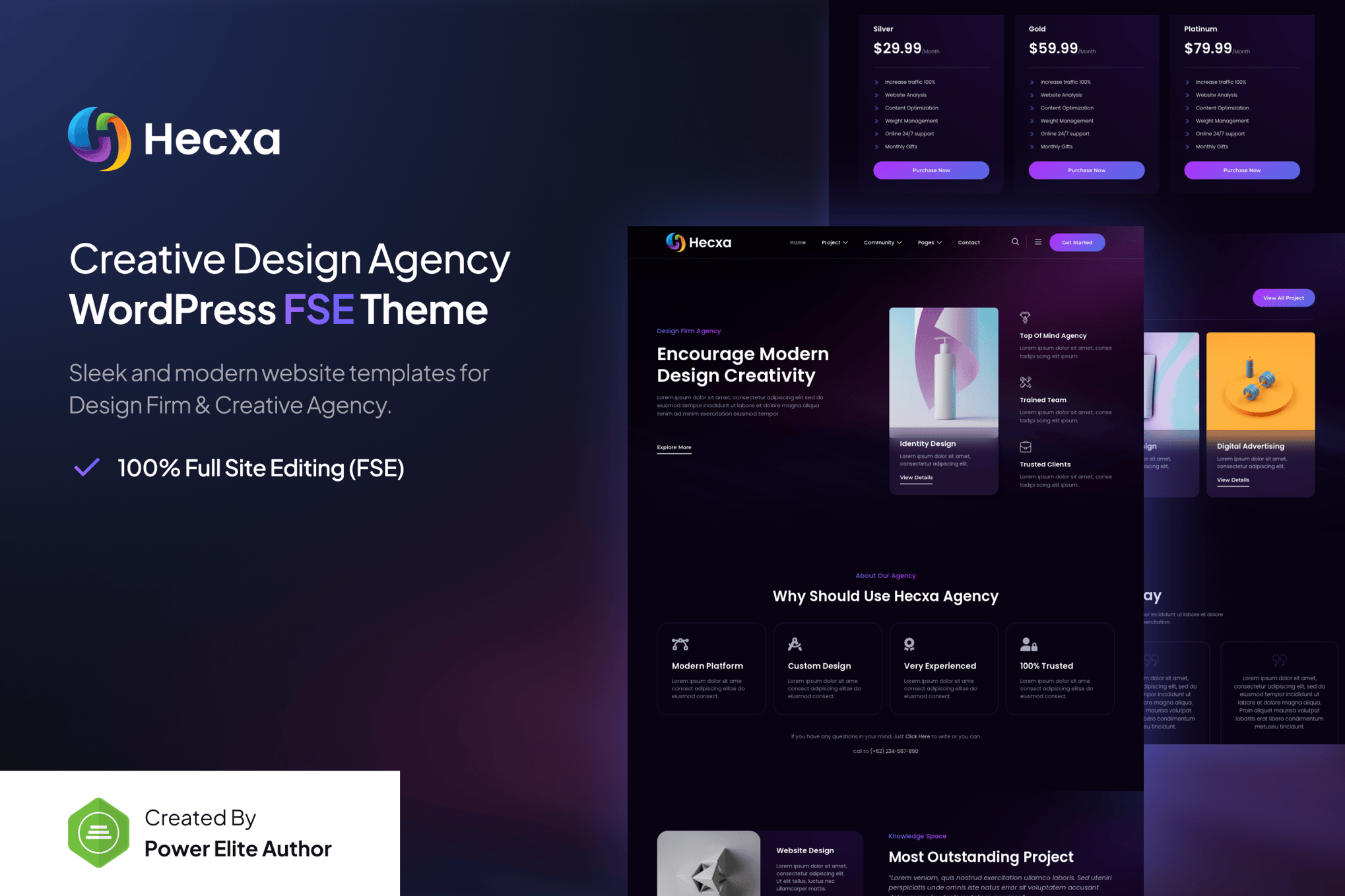Introducing Hecxa, a cutting-edge WordPress theme tailored for Design Firms, Studios, Freelancers, and Creative Agencies. With seamless compatibility with the advanced Block Editor, Hecxa empowers users to effortlessly craft dynamic, responsive websites without extensive coding knowledge. Boasting features like comprehensive Full Site Editing capabilities, a diverse Template Library, lightning-speed performance optimization, 100% SEO friendliness, and seamless responsive design, Hecxa ensures an engaging and memorable online experience for visitors on all devices. Benefit from lifetime regular updates and dedicated world-class support to unleash the full potential of your online presence. Elevate your brand with Hecxa today!