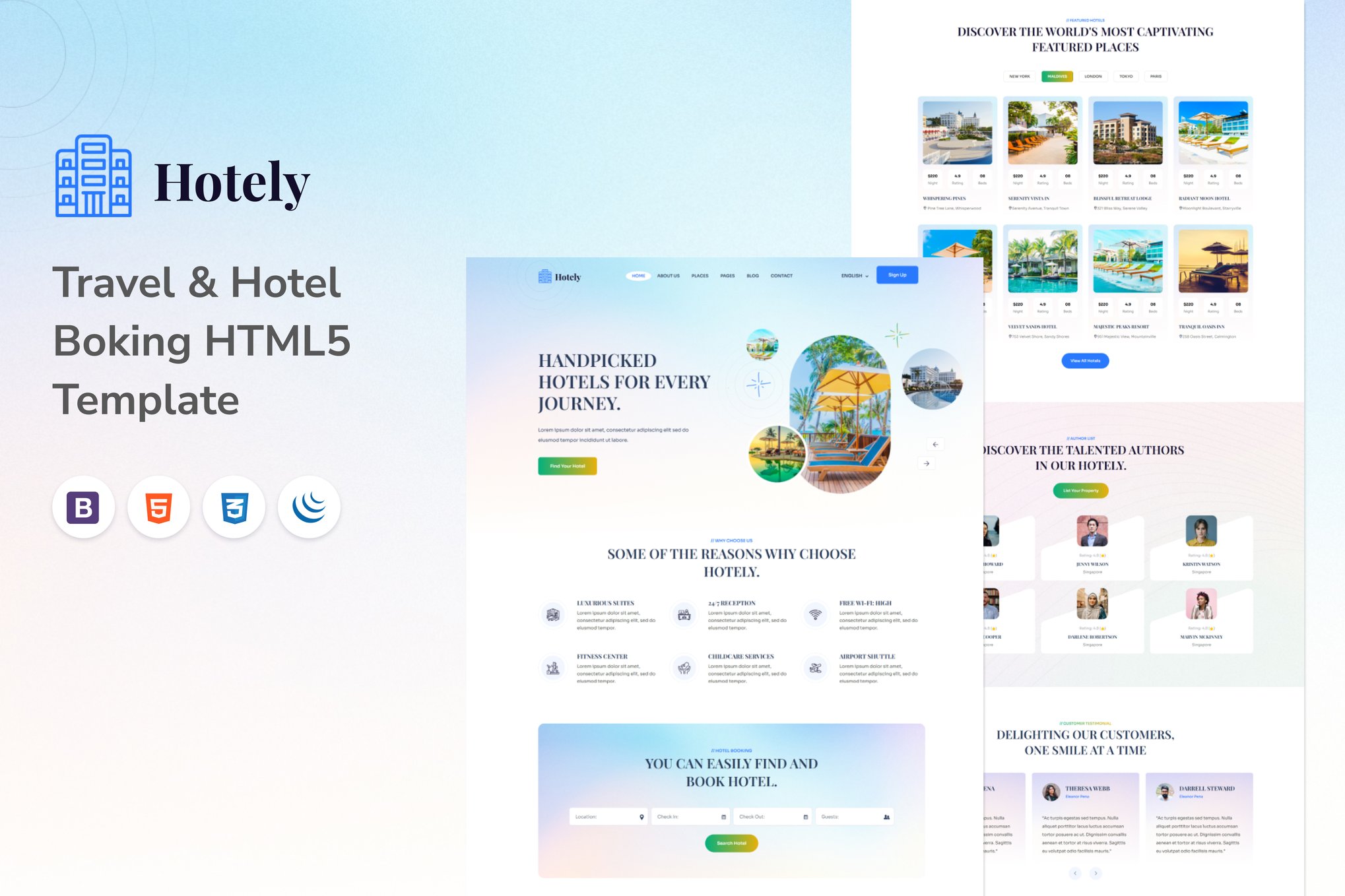 Introducing Hotely Star Template, a perfect solution for Hotel & Resort websites. This HTML5 template offers a seamless booking experience from any device, ensuring convenience for both users and hotel owners. With dedicated pages showcasing accommodation details and an attractive booking system, Hotely Star Template also features two unique home pages and 28+ inner pages powered by Bootstrap5. The clean code structure makes customization easy, while modern design elements like team profiles, projects, and blog sections enhance user engagement. Moreover, the template is fully responsive and SEO-friendly, ensuring optimal performance across different platforms. Get ready to elevate your hotel’s online presence with Hotely Star Template.