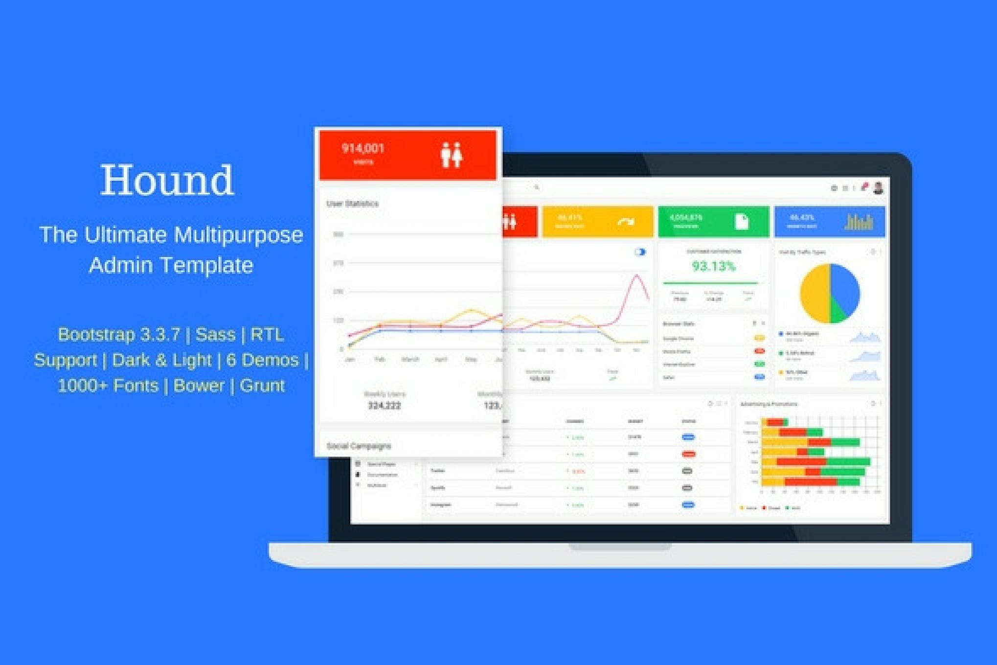 Hound – The Ultimate Multipurpose Admin Template is a versatile and robust solution for managing any type of administration panel. With its sleek and modern design, this template offers a wide range of pre-built pages and components, making it easy to create a user-friendly and fully functional admin interface. Integrated with powerful plugins and highly customizable, Hound is perfect for any project requiring an efficient and professional admin template.