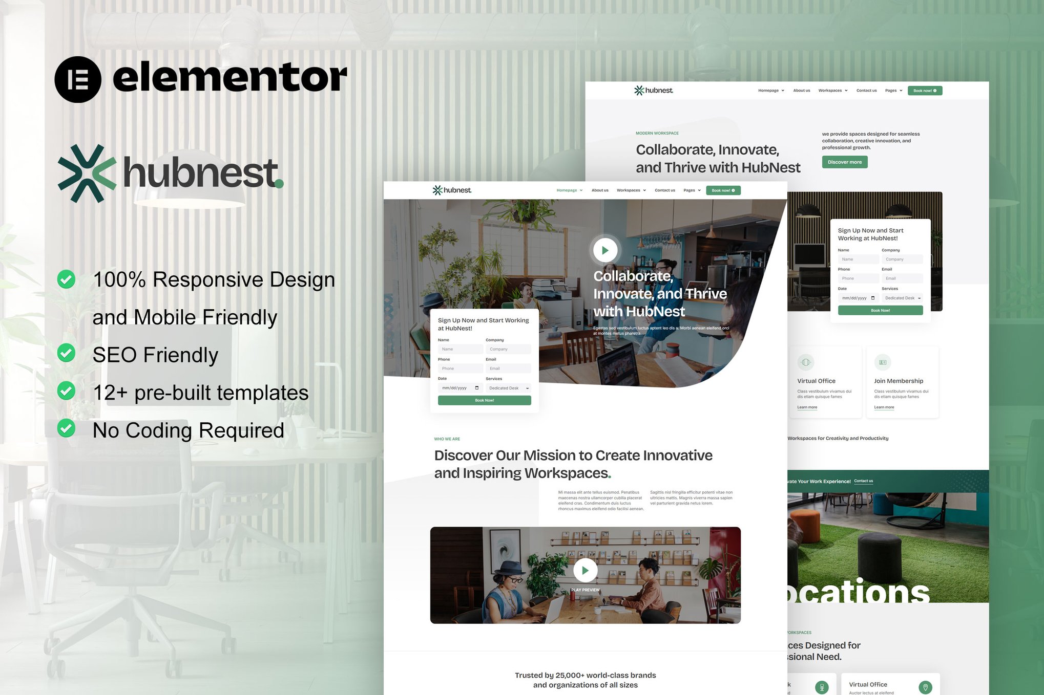 Introducing Hubnest, an Elementor Pro Template Kit designed specifically for Coworking Space & Virtual Office Service Websites. This kit offers a clean, modern, and professional look, making it easy to create a website showcasing various services such as coworking spaces, private offices, virtual offices, meeting rooms, and event spaces. With 12 pre-built templates and 100% mobile responsiveness, you can easily customize your site without any coding knowledge required. Compatible with Elementor Hello Theme, this kit includes essential pages like Homepage, About Us, Blog Archive, and more. Install with the Envato Elements plugin for WordPress and start building your ideal workspace website hassle-free.