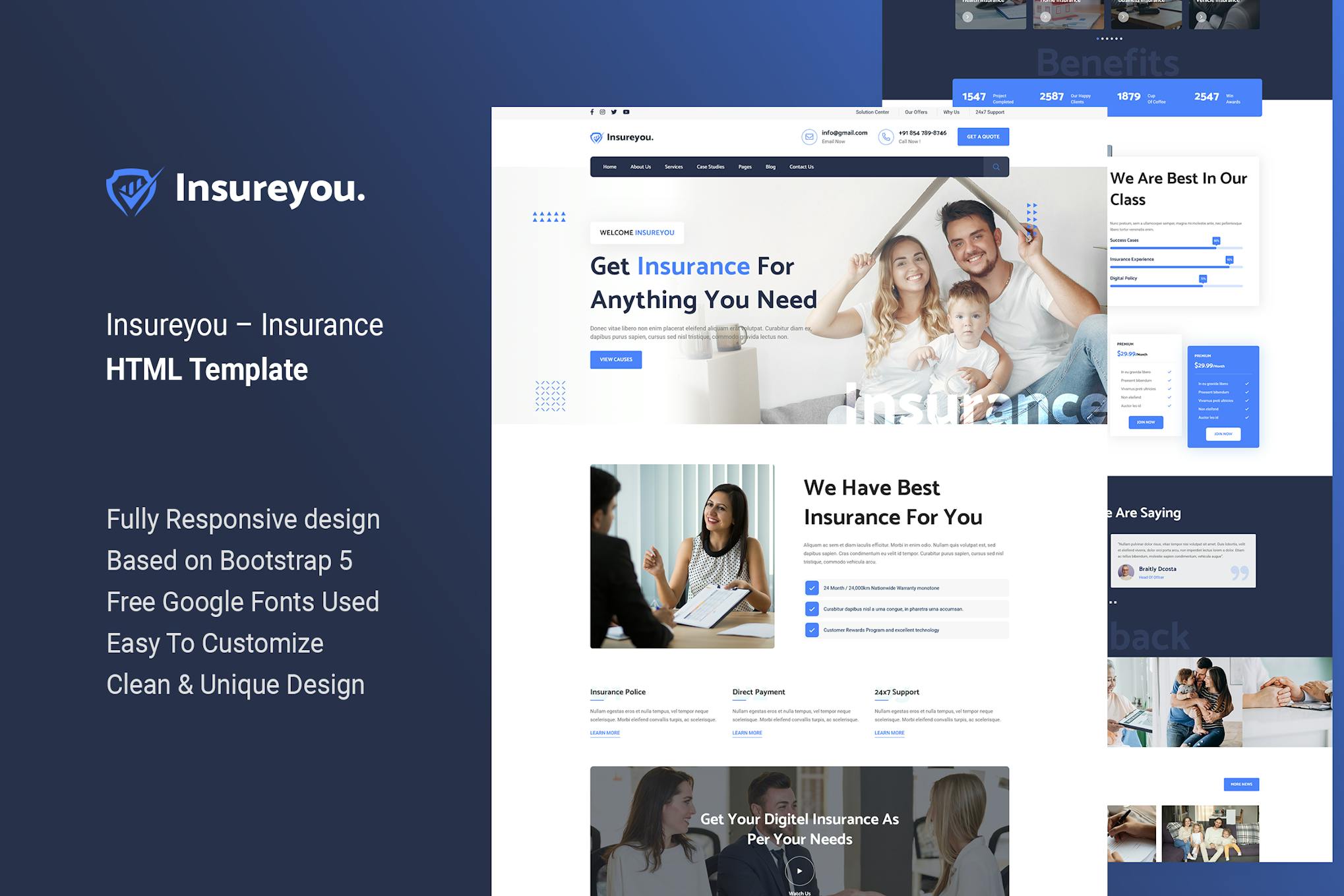 The “InsureYou Insurance HTML Template” is a versatile and modern design solution ideal for insurance companies and related businesses. With a sleek and professional layout, this template offers a range of customizable features to create a tailored online presence. The user-friendly interface enhances customer experience, while the responsive design ensures seamless viewing across devices. Stand out with eye-catching visuals and dynamic elements that can be easily integrated into the template. Elevate your online presence and establish credibility with the InsureYou Insurance HTML Template.