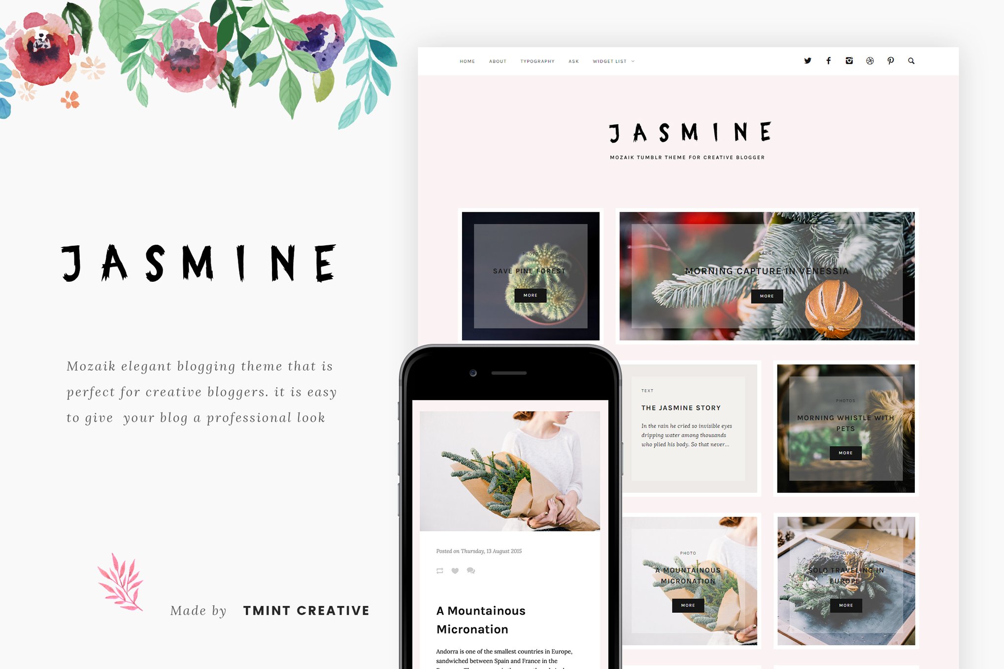 “JASMINE is a Mozaik elegant blogging theme tailored for creative bloggers, offering over 90 customizable options to give your blog a professional edge. Crafted from scratch with passion and attention to detail, this theme stands out from the crowd. The included documentation provides step-by-step guidance, ensuring a smooth setup process. Noteworthy features include showcasing important posts with a ‘large’ tag, displaying Instagram feed in a clean grid format, and engaging visitors with mail subscribe options via Feedburner or MailChimp. Additionally, users can enjoy versatile widget options, a tags cloud feature, social media sharing buttons, and seamless integration with various social feeds. JASMINE’s fast-loading and fully responsive design makes for a user-friendly experience across devices. With dedicated support available, this premium theme promises a unique and dynamic blogging experience.”