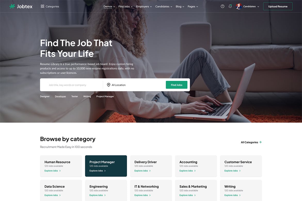 Presenting Jobtex, a cutting-edge Job Board ReactJS Template designed for professional networking. Seamlessly connect job seekers and companies, browse millions of job postings, customize your search, and apply effortlessly. With a modern and responsive design, Jobtex offers versatile customization options, developer-friendly code, and a clean aesthetic to create your ideal job board website. Elevate your online presence with Jobtex’s array of features, including 10 home page styles, 65+ inner pages, responsive layout, and easy customization capabilities. Unlock a world of opportunities with Jobtex and give your website a 5-star upgrade today.