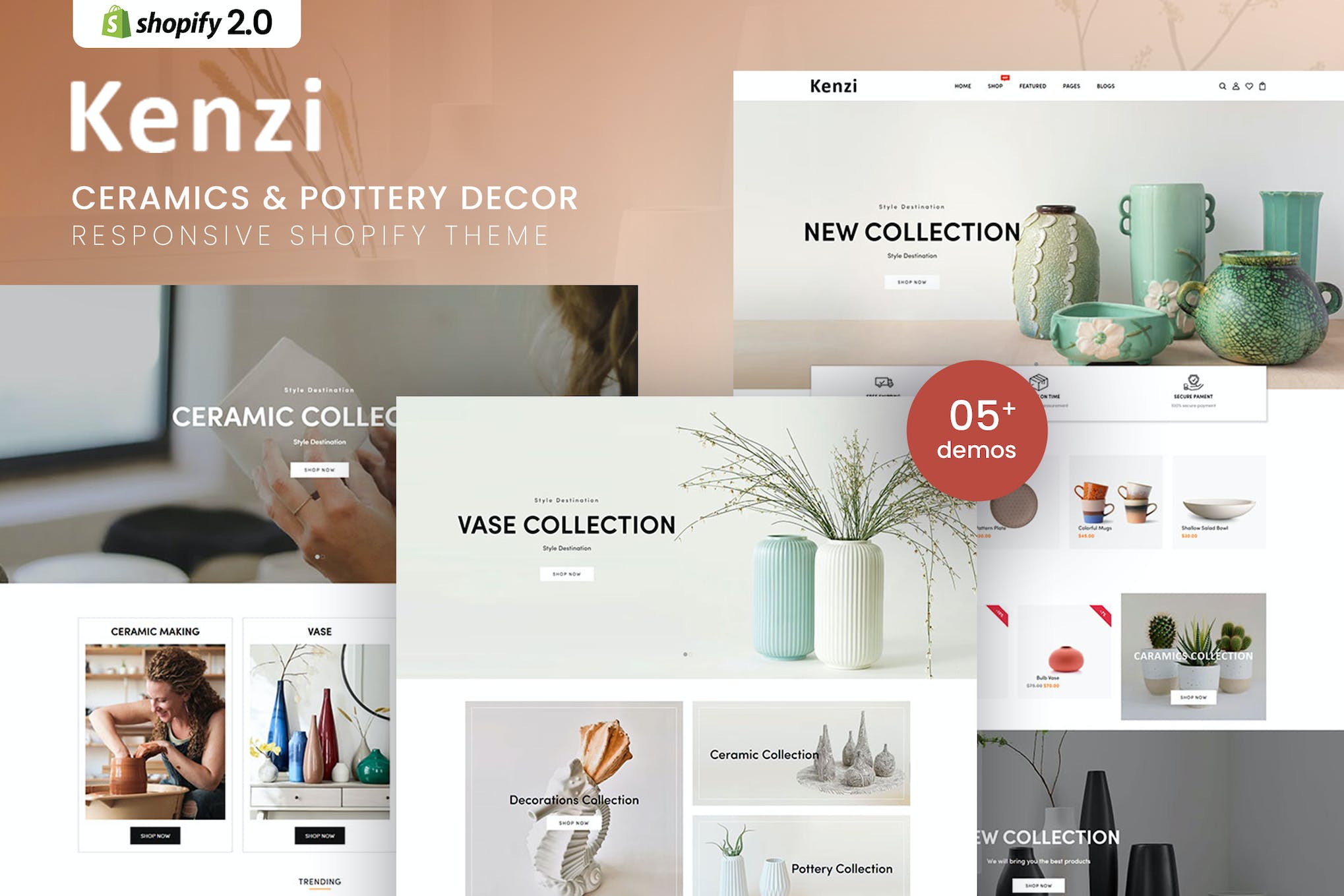 Introducing Kenzi, a clean and elegant Shopify Theme designed specifically for business professional online shops. With its 5 homepage variations, 6 header styles, and unlimited megamenu layouts, it is ideal for Ceramics & Pottery Decor and various other categories. Kenzi is not just an online retailer, it is a visually stunning and user-friendly platform that showcases your products with a beautiful image slider in the header region. With its responsive and retina-ready design, your website will look flawless across all devices. Moreover, Kenzi offers powerful customization options, automatic price change, advanced navigation, and SEO optimization, making it the perfect choice for creating a professional and unique eCommerce website effortlessly.
