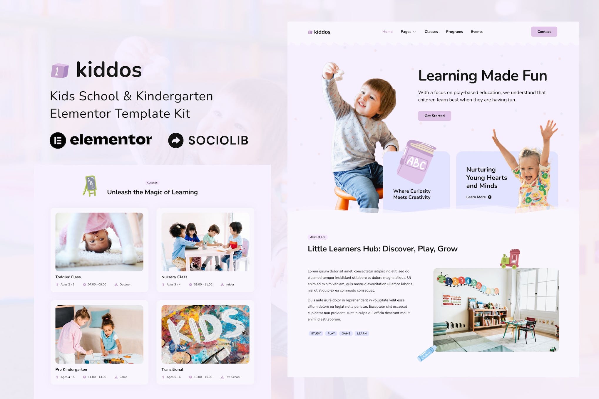 Introducing Kiddos, a versatile Elementor Template Kit designed specifically for Kids School & Kindergarten websites. With 12+ beautifully crafted templates, you can easily create a modern and creative website using the drag-and-drop visual builder. Customize fonts, colors, and page elements effortlessly, while enjoying a fast-loading, responsive design. Compatible with most Elementor themes, this Template Kit is the perfect choice for showcasing your school, programs, events, and more. Explore the possibilities and bring a fresh and dynamic feel to your website today. Please note that licensing may be required for any images used in the templates.