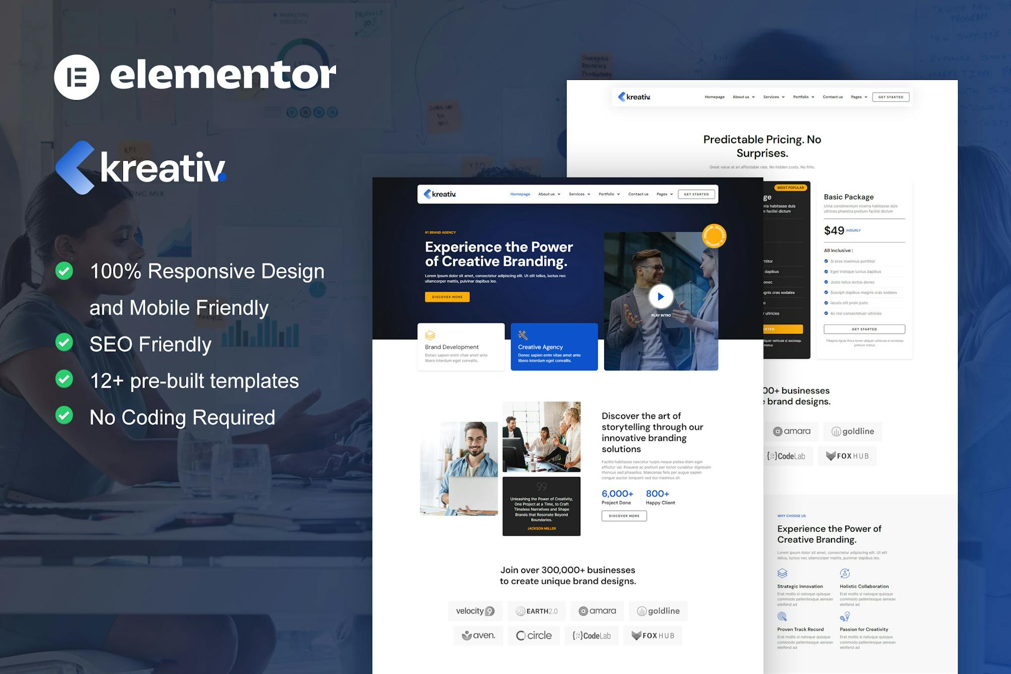 Enhance your online presence with Kreativ, an impressive Elementor Pro Template Kit designed for Digital Agency & Creative Branding websites. Featuring 12+ pre-built templates boasting a sleek, modern style, this kit is ideal for a wide range of businesses including digital agencies, creative branding services, and more. Save time and effort in creating your website with this template kit that is easy to customize using the Elementor Page Builder – no coding skills required, just drag and drop. Benefit from the professional design, 100% responsiveness, and mobile-friendliness of this kit, optimized for use with the free Hello Elementor theme. Elevate your website development with Kreativ and stand out in the digital landscape.