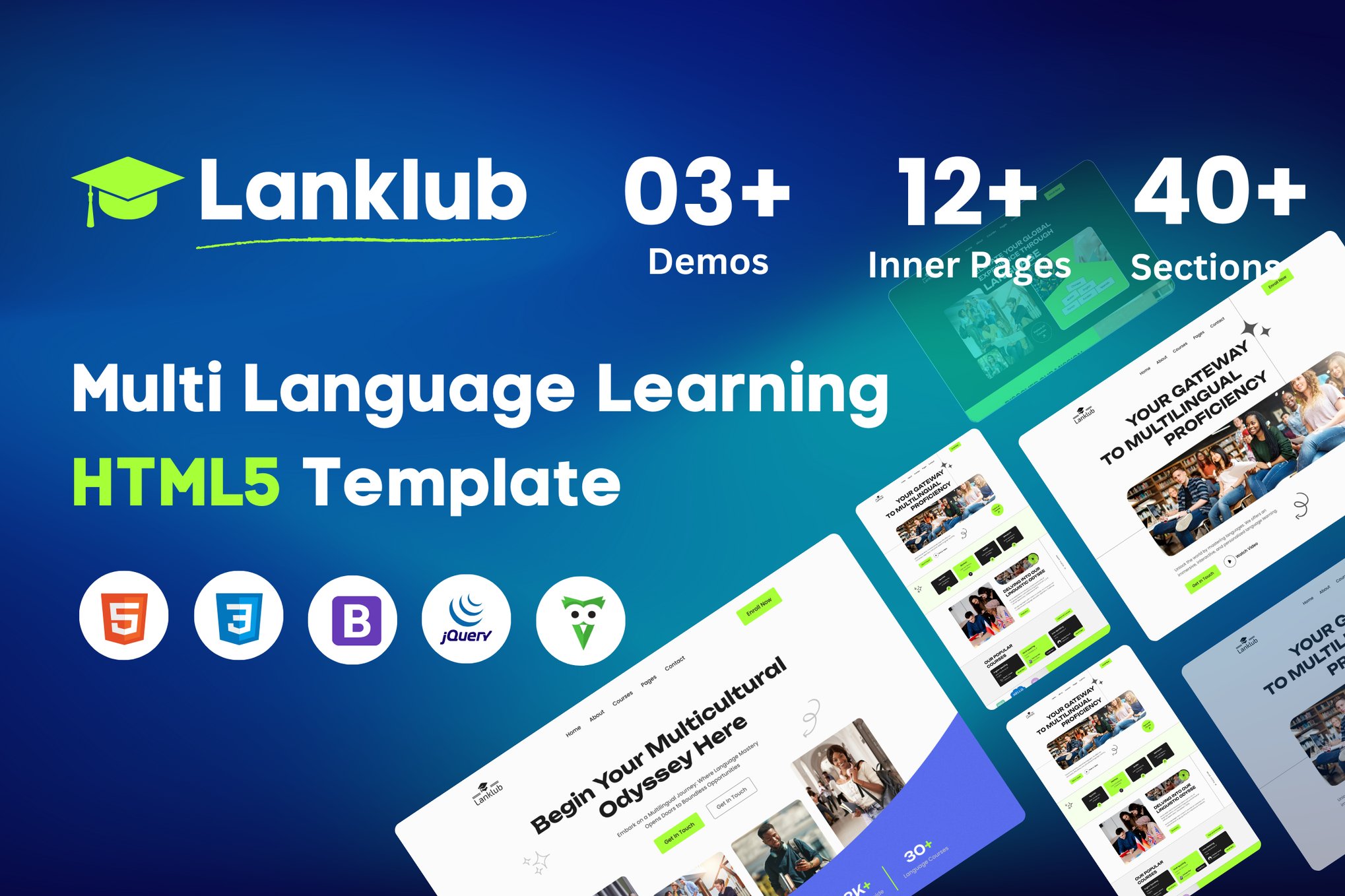 Introducing Lanklub, a versatile Multipurpose Language Learning HTML Bootstrap Template perfect for Language Learning, Academy, LMS, and Online Learning websites. With a clean and professional design, this template is based on Bootstrap 5 grid, ensuring seamless adaptation to any device – be it a laptop, mobile, or tablet. Key features include a responsive layout design, valid HTML files, Bootstrap framework integration, Owl Carousel Slider for engaging visuals, and ScrollCue Animation for scroll-triggered animations. With 3 Home Demos, a fluid responsive layout, clean code, advanced typography, and more, Lanklub offers a comprehensive solution for your academic website needs. Additionally, benefit from quick and dedicated 24/7 professional support for any assistance required.