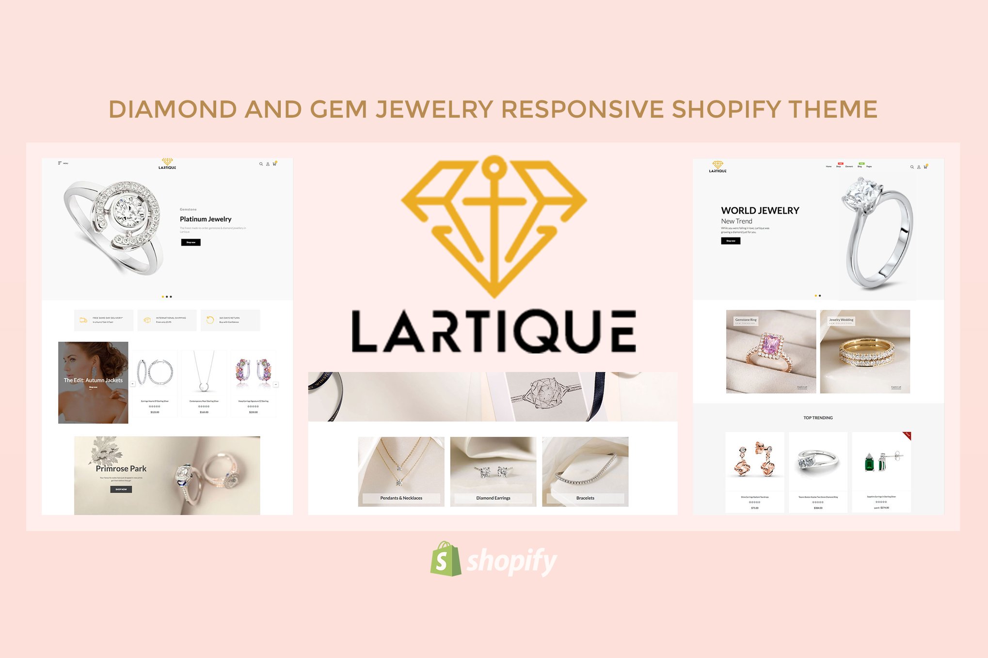 Create a stunning eCommerce website for your diamond, gem store, or jewelry shop with Lartique! This theme offers beautiful layouts and shop elements to showcase your products attractively. You can easily add features like a newsletter popup, login popup, and a neat drawer cart. Lartique is Shopify app compatible, simplifying store creation. Packed with powerful features tailored for jewelry businesses, including automatic price change, quick product views, advanced navigation, and more. With unlimited Google Fonts, SEO optimization, responsive design, and other tools like Ajax add to cart and wishlist, Lartique is your ultimate jewelry store solution. Shop now and elevate your online presence effortlessly!