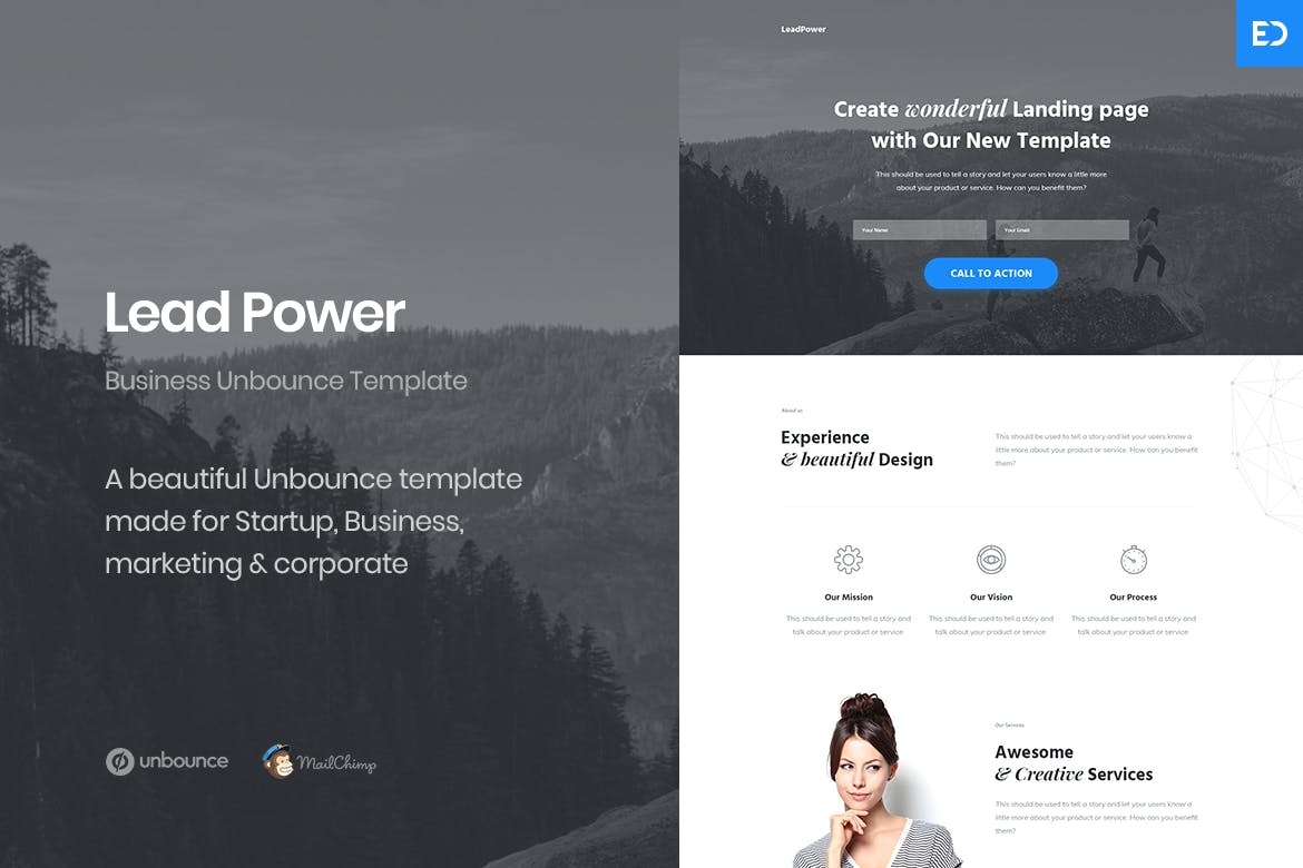 LeadPower is a sleek and contemporary Unbounce Template designed to prioritize conversion rates, making it ideal for promoting services or running lead generation campaigns. The template includes source PSD files, allowing for easy customization to suit your needs. With features such as a parallax background, drag-and-drop page builder, and a responsive layout, LeadPower offers a user-friendly experience. Additionally, the template includes a working Mailchimp subscribe form, custom HTML/CSS animation effects, and detailed documentation to assist with any customization or troubleshooting needs. Overall, LeadPower stands out with its unique features and modern design, providing a seamless solution for creating impactful landing pages.