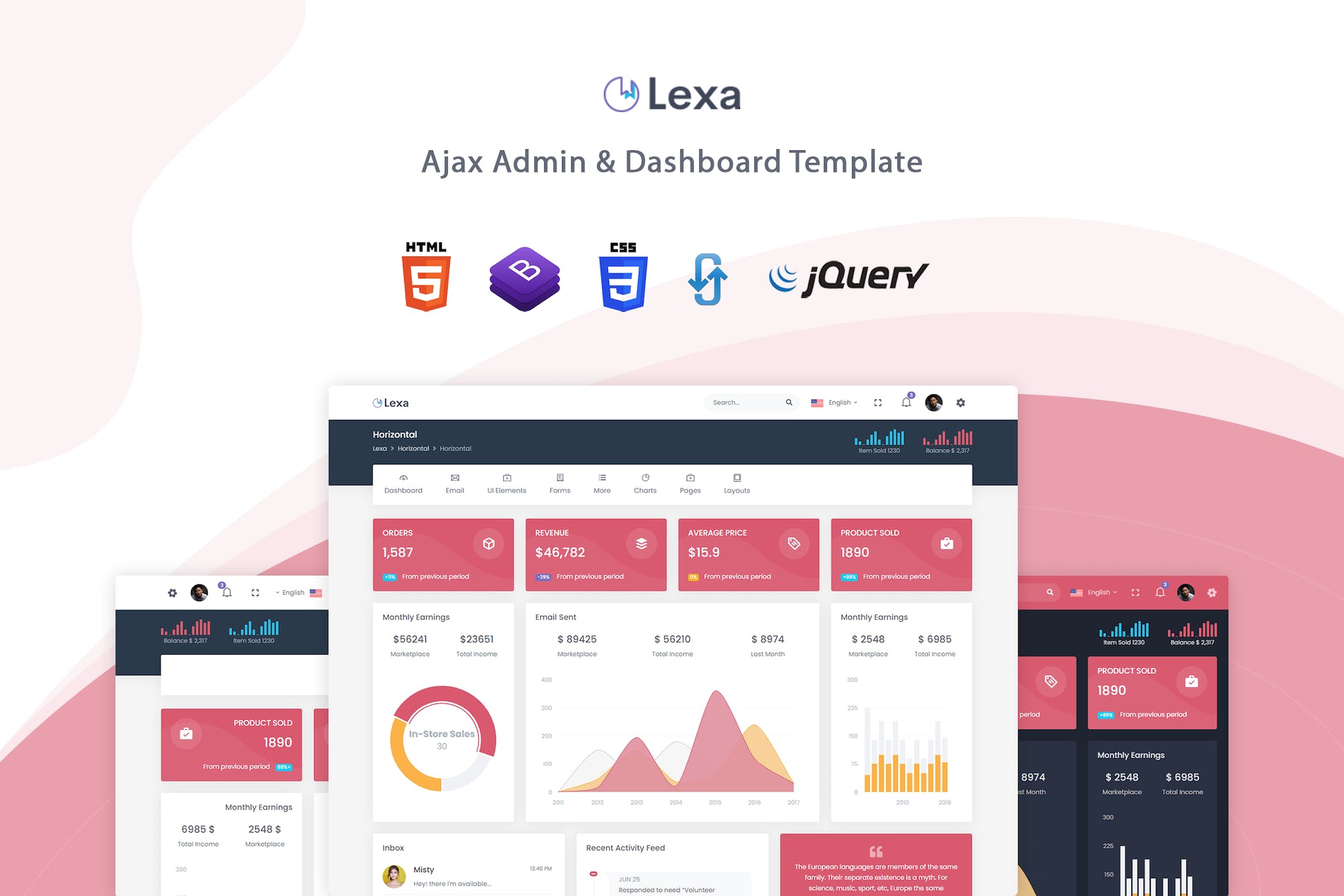 Lexa – Ajax Admin & Dashboard Template is a powerful and intuitive tool to create stunning admin panels and dashboards. Packed with features like AJAX technology, dark mode, and responsive design, it offers seamless navigation and an excellent user experience. With its customizable components and sleek interface, Lexa is a go-to choice for developers and designers looking to build professional web applications.