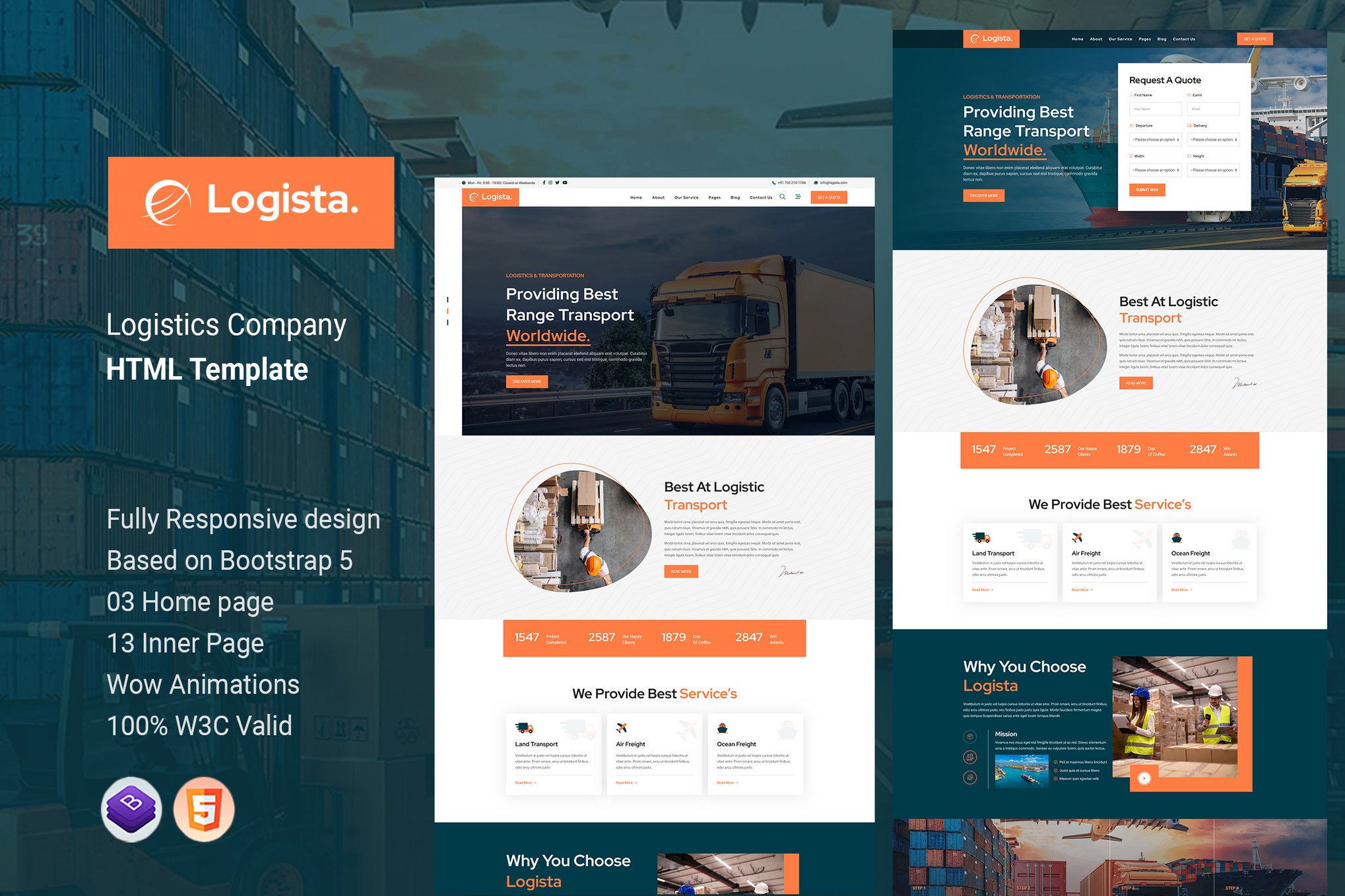 Download Logista – a cutting-edge HTML template designed for versatile use in cargo, transport, shipping, and logistics industries. This fully responsive template boasts a modern and unique design, making it an ideal fit for corporate businesses seeking a professional online presence. With well-commented code and easy customization options, you can tailor this template to your specific needs effortlessly. Featuring a fully responsive design, Bootstrap v3.3.7 framework, 3 home page layouts, 13 inner pages, and captivating Wow Animations, Logista is a must-have for businesses looking to make a statement online. Explore the endless possibilities with Logista today!