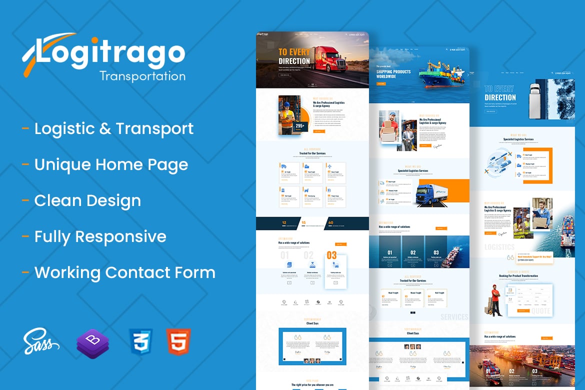Logitrago Transport & Logistics HTML Template is a meticulously designed template tailored specifically for logistics businesses. Crafted after extensive research into the cargo, transport, logistics, and trucking industry, this template caters to your needs and exceeds client expectations. The template is built on a 1170 Bootstrap-based design, ensuring 100% fluid responsiveness on all devices. With features such as SCSS files, valid W3 web standards, responsive layouts, and a working contact form, this template offers a seamless user experience. The unique slider effects, Google Font integration, responsive carousels, and cross-browser optimization further enhance its functionality. Additionally, it comes with a well-documented structure, sticky menus, and reliable support, making it a comprehensive solution for logistics websites. Get this template today and benefit from its myriad features that guarantee a smooth and professional online presence for your logistics business.