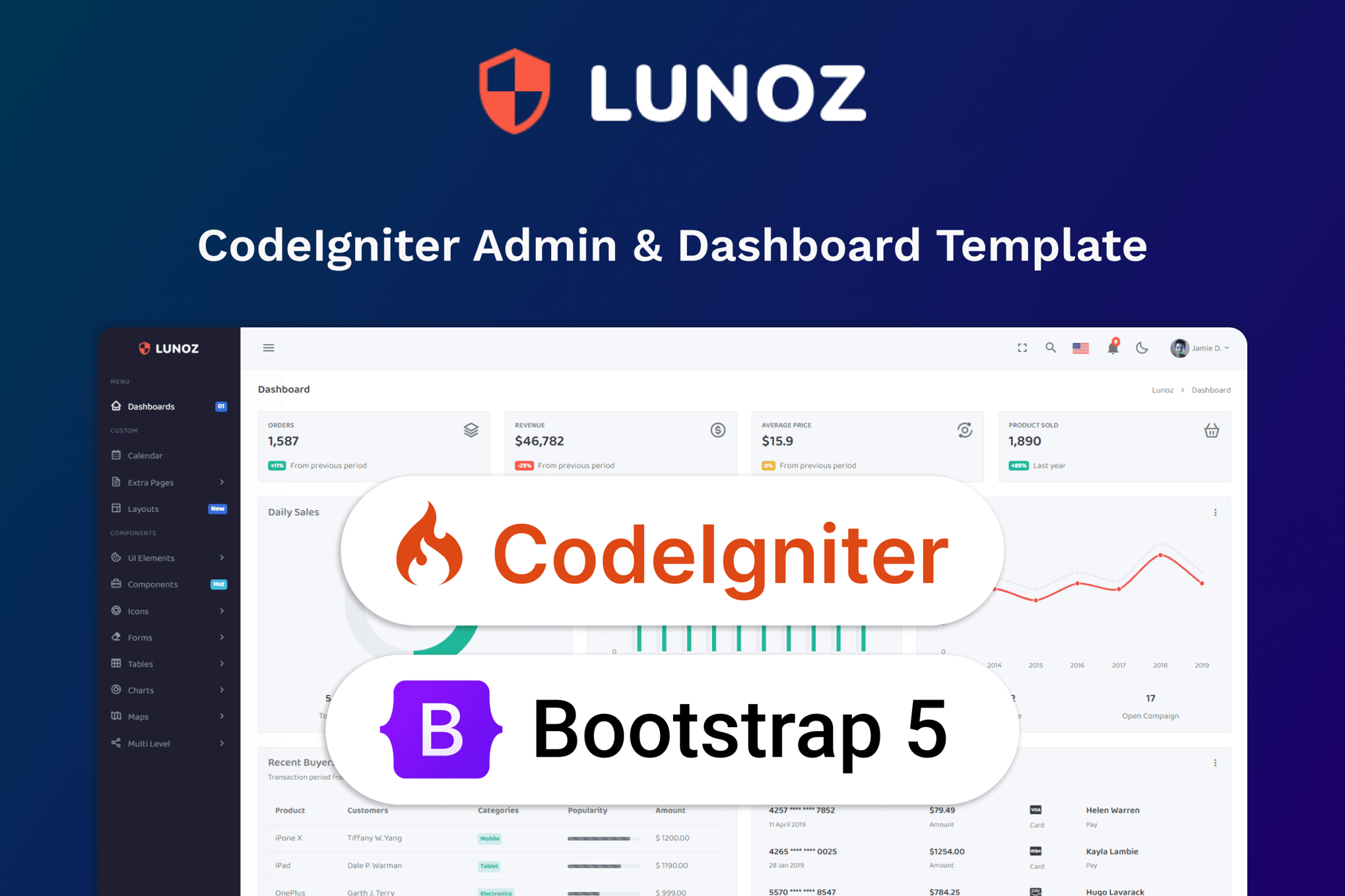 Lunozi is the ultimate choice for developers seeking a CodeIgniter admin dashboard template that’s both developer-friendly and fully customizable. Based on Material design and Bootstrap 5, this template boasts a responsive layout suitable for all devices, a clean user interface, and a vast array of components and widgets. With 99+ pre-built pages, including login, register, and error pages, alongside features like form validation, calendar view, and various layout options, Lunozi streamlines the development process, making it ideal for creating saas-based interfaces or robust administrator dashboards. Backed by support for SASS, Font Awesome 5 Icons, and a multitude of plugins, Lunozi equips teams to work efficiently, accelerating project timelines and reducing development costs.