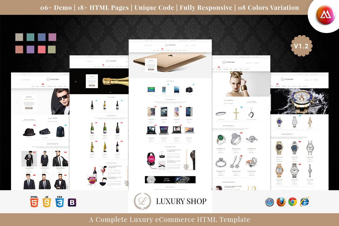 Introducing Luxury Shop eCommerce HTML Template, a sophisticated and modern solution for fashion and apparel businesses. With a blend of captivating colors, banners, and information blocks, Luxury Shop offers a stunning layout that captures the attention of your customers effortlessly. Showcase your latest products with the large banner and provide easy access to essential information through neatly arranged blocks. This responsive Bootstrap-based theme ensures a seamless shopping experience across all devices, maintaining a consistent and stylish look. With features like a responsive slider, mega menu, and modern design elements, Luxury Shop is the perfect choice to elevate your online store presence.