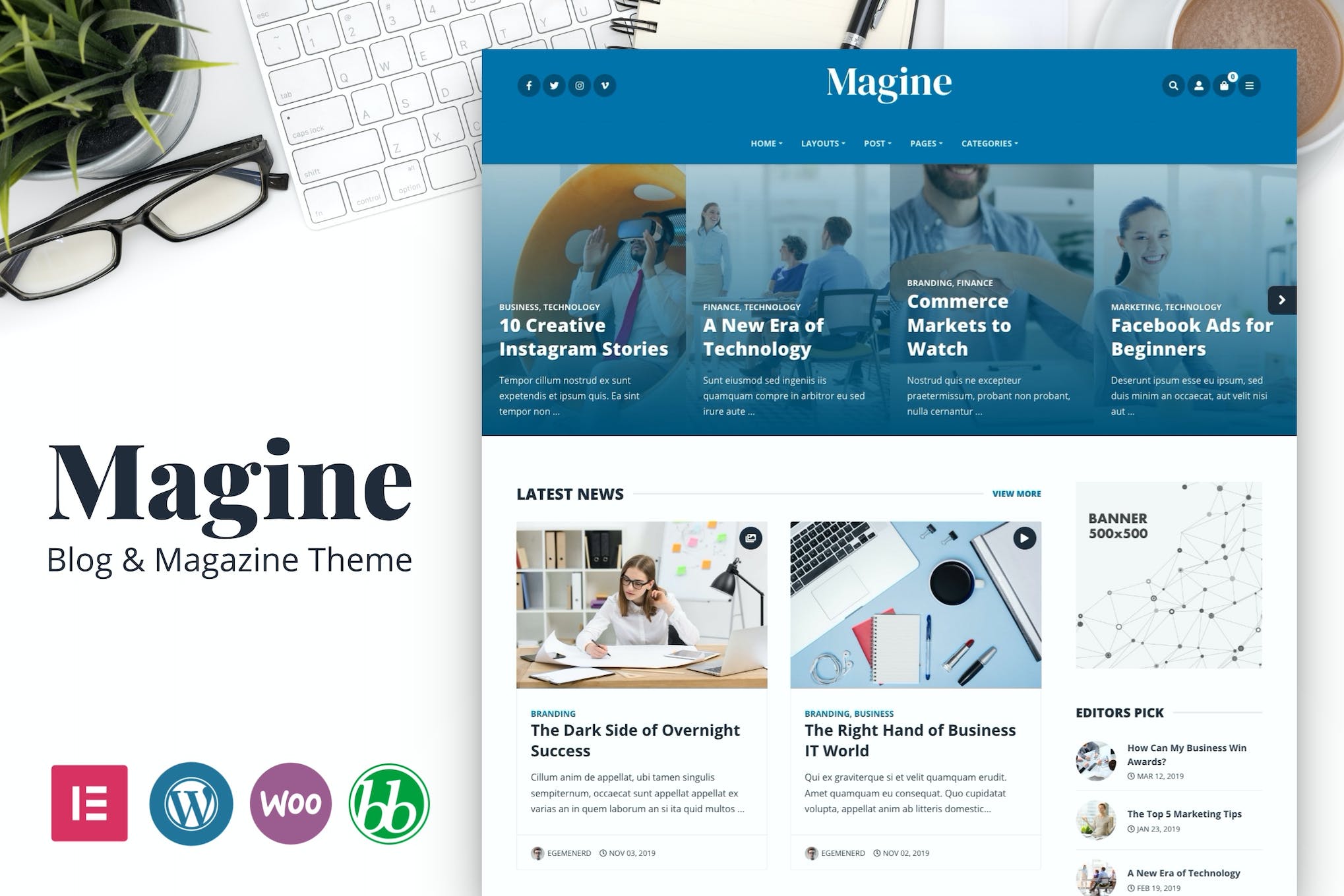 Introducing Magine, a modern WordPress theme perfect for business blogs. With its fully responsive and clean design, Magine allows you to create your own unique page and post layouts seamlessly. It is packed with advanced custom Elementor widgets and offers easy customization options through the Customizer. Compatible with popular plugins like Gutenberg, WooCommerce, and bbPress, Magine also supports various blog and shop layouts. Boost your website with its fast CSS masonry grid layouts, social media sharing buttons, and ad management system. Experience the power of Magine and elevate your online presence.