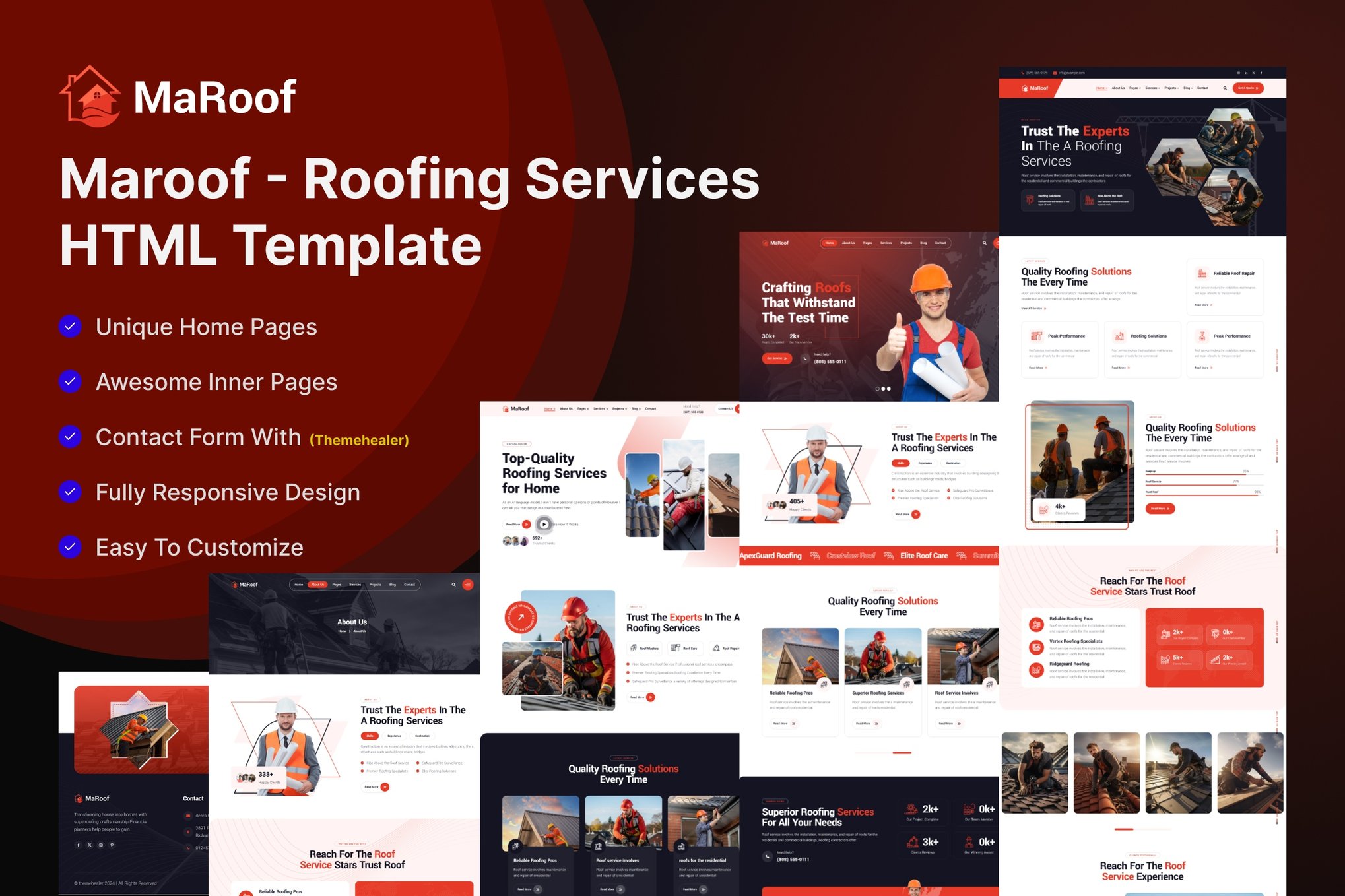 Maroof is a cutting-edge HTML template tailored for roofing services, construction, installation, maintenance, and repair companies. Packed with versatile features, it boasts 4 creative homepage layouts and 20+ HTML files for a seamless user experience. This template is fully responsive and mobile-friendly, built on Bootstrap 5.x for optimal performance. It offers a sleek design that is easy to customize with a 1170px grid. Maroof includes essential features like SEO optimization, Google Maps integration, and responsive design. With 24/7 support and detailed documentation, this template ensures a hassle-free experience for users. Please note that images are for preview purposes only.