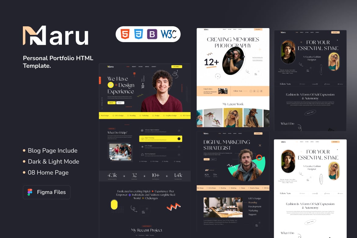 Introducing Maru – a sleek and responsive HTML template tailored for developers, designers, freelancers, and creative agencies. With 15+ pre-built demo layouts, dark & light modes, and fully customizable elements, Maru simplifies the process of creating personalized online portfolios. Showcasing 4 home page versions, 90+ inner pages, RTL compatibility, Mailchimp integration, and advanced Bootstrap 5.x framework, this template ensures a seamless user experience, enhanced by CSS3 animations and MegaMenu options. Benefit from SEO-optimized, cross-browser compatible design, backed by detailed documentation and quick customer support for a robust online presence.